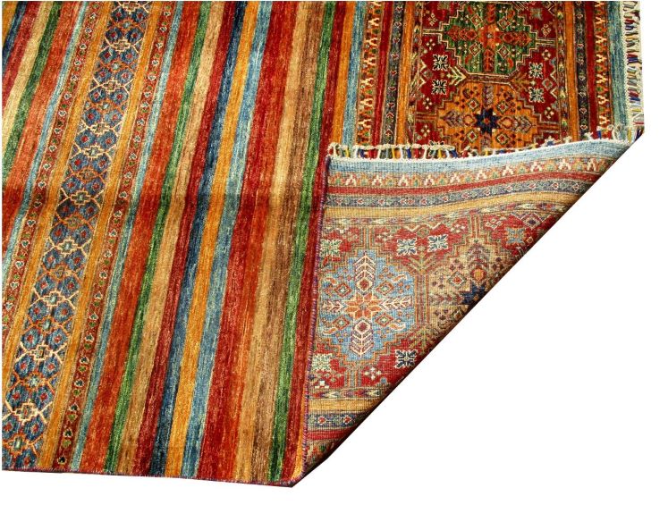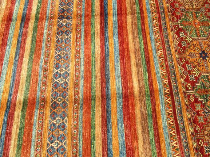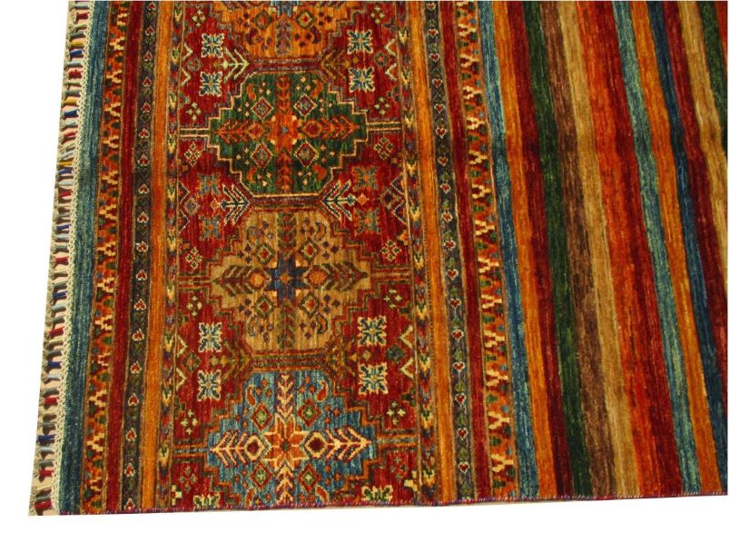 These are beautiful reproduction of centuries old Central Asian Caucasian designs by Afghan weavers mainly by Hazara Tribe known as master weavers in Afghanistan. Material is a high-quality natural wool spun by hand using their centuries old traditional skill to create a perfect texture to the carpet. Specific vibrant colors are used to give closest look to the ancient designs, using their secret knowledge passed through family traditions . The weaving skill, knowledge of hand spinning wool and skill to match various vibrant colors have revived some of the master pieces, as close to the rugs produced in past.