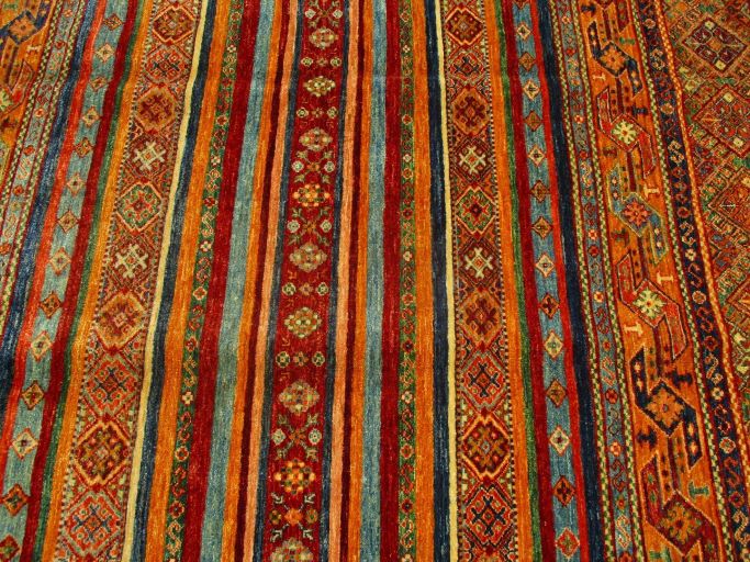 These are beautiful reproduction of centuries old Central Asian Caucasian designs by Afghan weavers mainly by Hazara Tribe known as master weavers in Afghanistan. Material is a high-quality natural wool spun by hand using their centuries old traditional skill to create a perfect texture to the carpet. Specific vibrant colors are used to give closest look to the ancient designs, using their secret knowledge passed through family traditions . The weaving skill, knowledge of hand spinning wool and skill to match various vibrant colors have revived some of the master pieces, as close to the rugs produced in past.