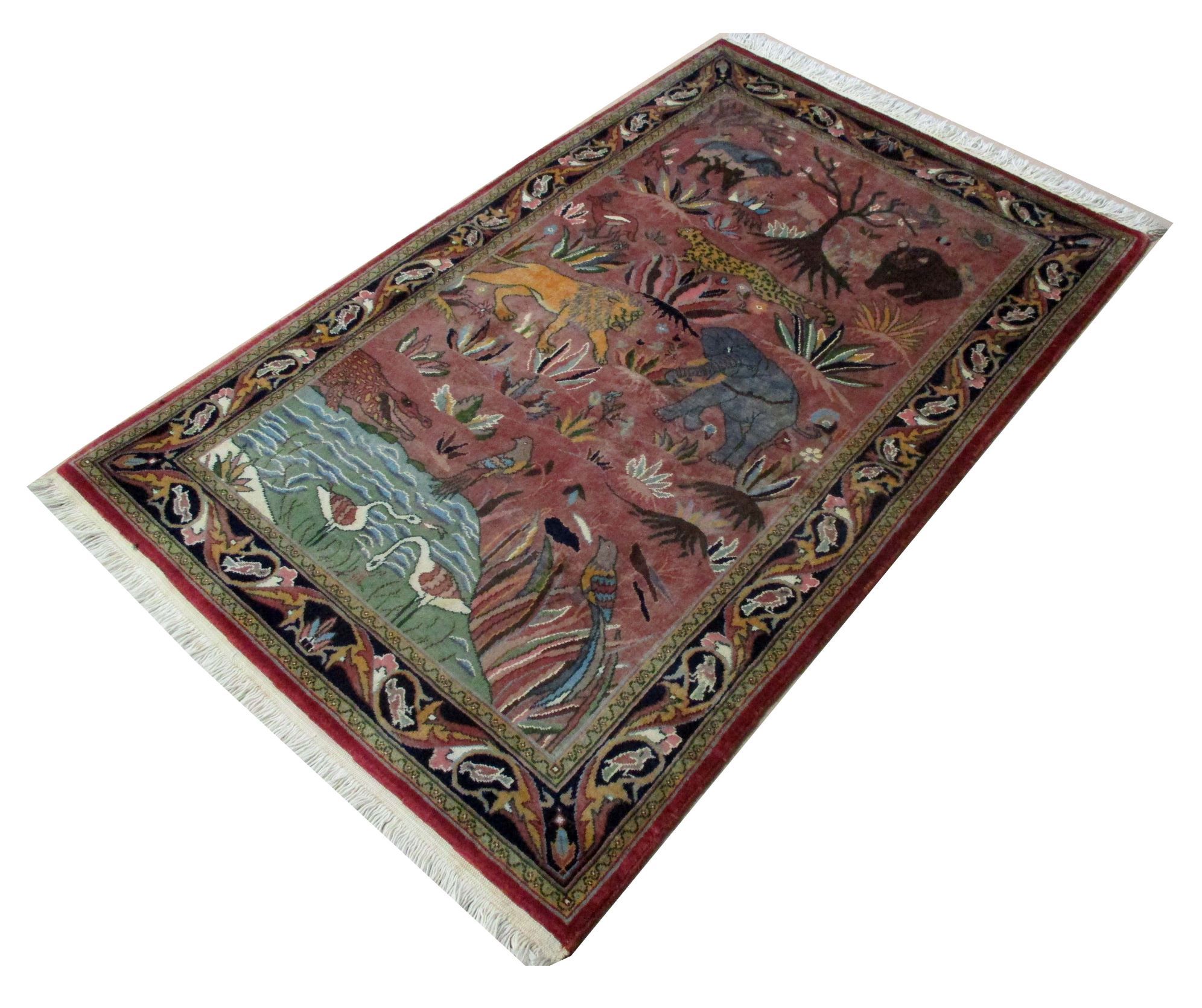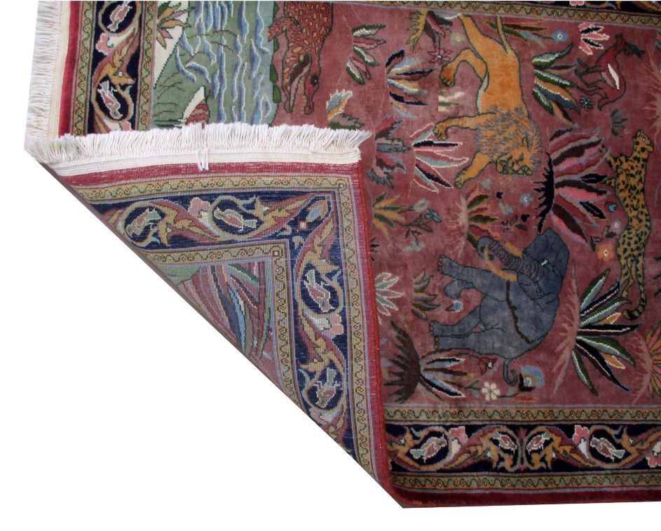 These carpets are produced in Pakistan by Master Weavers using double knot skill (Turkish Knot). Knotting is highly integrated and dense which is normally up to 500,000 knots per sq. meter. Designs are taken from famous Persian Carpet designs using high quality Marina and New Zealand wool. Design is initially created on a graphic paper and then converted into a written format which is narrated by one person next to the weavers and weavers follow the numbers of knots for each color tp place on required area. Designs and shape is often perfect and highly recommended for formal living.