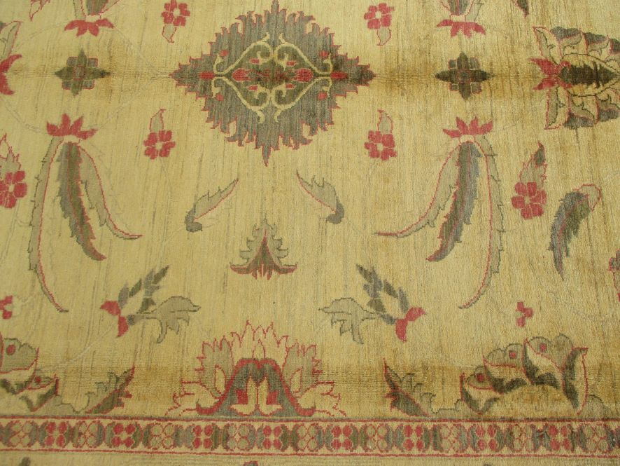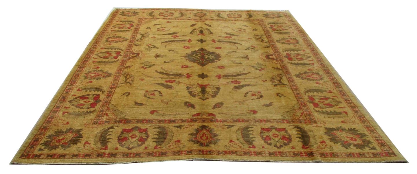 Ziegler are beautiful reproduction of centuries old Persian designs by Afghan weavers mainly Turkomans in Afghanistan. Material is a high-quality natural wool spun by hand using their centuries old traditional skill to create a perfect texture. Colors and dyes are often used from organic plants for muted finish, using their secret knowledge from nomadic way of life. Over the time, the same quality is also been produced in contemporary - modern designs provided by the western carpet dealers. The weaving skill of Turkomans, technique of hand spinning wool and colors have revived some of the master pieces, as close to the rugs produced in the past.