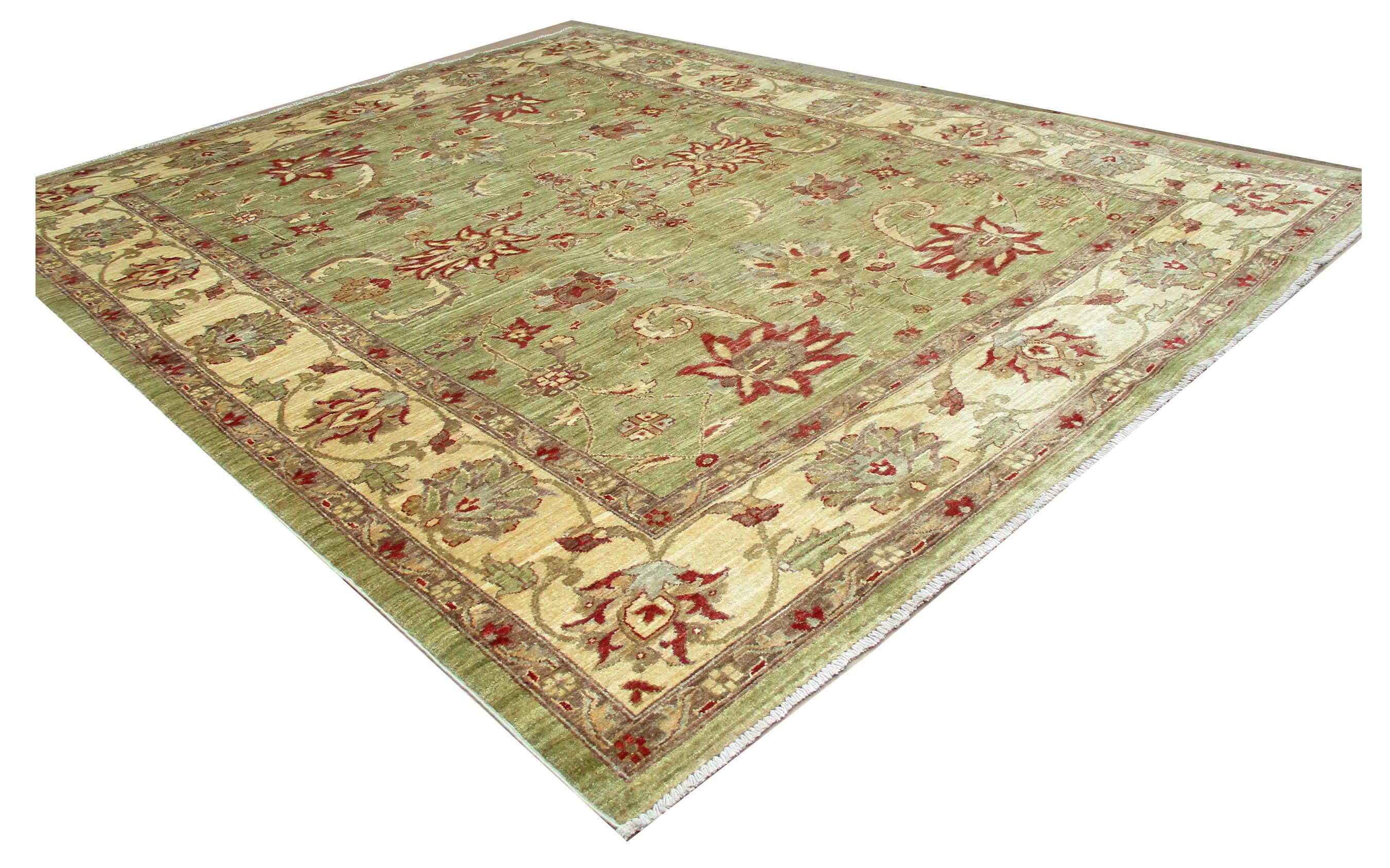Ziegler are beautiful reproduction of centuries old Persian designs by Afghan weavers mainly Turkomans in Afghanistan. Material is a high-quality natural wool spun by hand using their centuries old traditional skill to create a perfect texture. Colors and dyes are often used from organic plants for muted finish, using their secret knowledge from nomadic way of life. Over the time, the same quality is also been produced in contemporary - modern designs provided by the western carpet dealers. The weaving skill of Turkomans, technique of hand spinning wool and colors have revived some of the master pieces, as close to the rugs produced in the past.