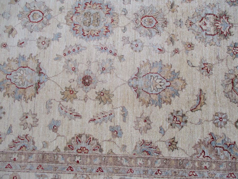 Ziegler are beautiful reproduction of centuries old Persian designs by Afghan weavers mainly Turkomans in Afghanistan. Material is a high-quality natural wool spun by hand using their centuries old traditional skill to create a perfect texture. Colors and dyes are often used from organic plants for muted finish, using their secret knowledge from nomadic way of life. Over the time, the same quality is also been produced in contemporary - modern designs provided by the western carpet dealers. The weaving skill of Turkomans, technique of hand spinning wool and colors have revived some of the master pieces, as close to the rugs produced in the past.