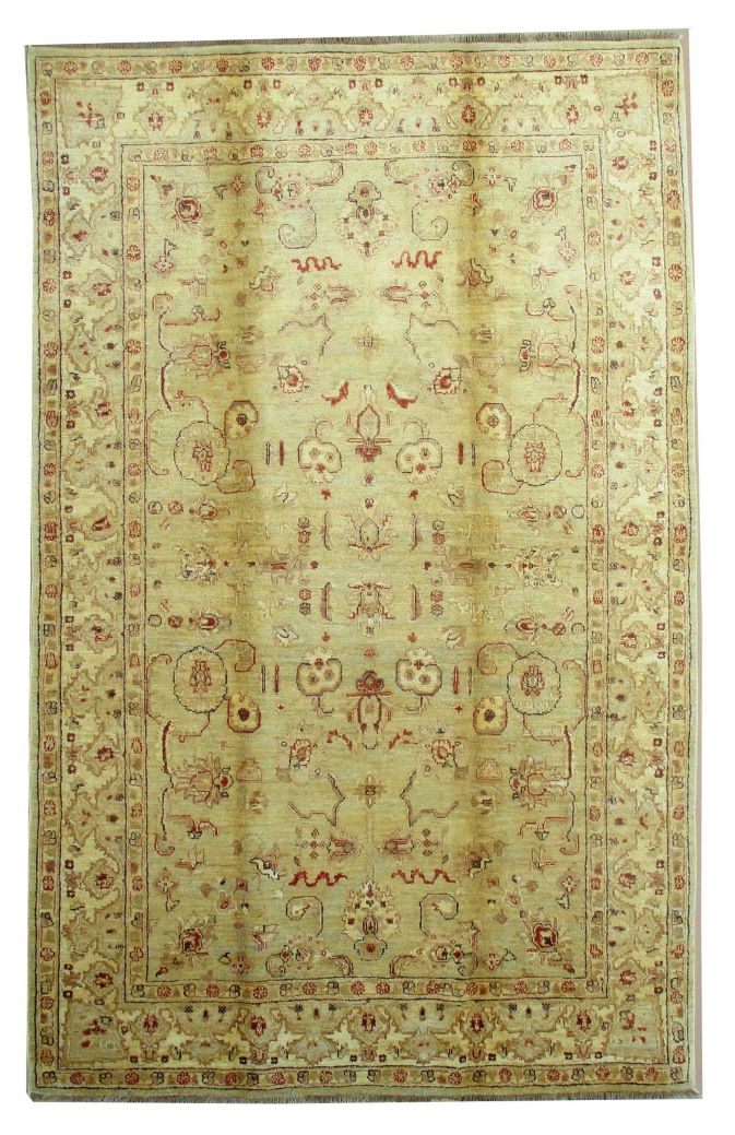 Ziegler are beautiful reproduction of centuries old Persian designs by Afghan weavers mainly Turkomans in Afghanistan. Material is a high-quality natural wool spun by hand using their centuries old traditional skill to create a perfect texture. Colors and dyes are often used from organic plants for muted finish, using their secret knowledge from nomadic way of life. Over the time, the same quality is also been produced in contemporary - modern designs provided by the western carpet dealers. The weaving skill of Turkomans, technique of hand spinning wool and colors have revived some of the master pieces, as close to the rugs produced in the past.