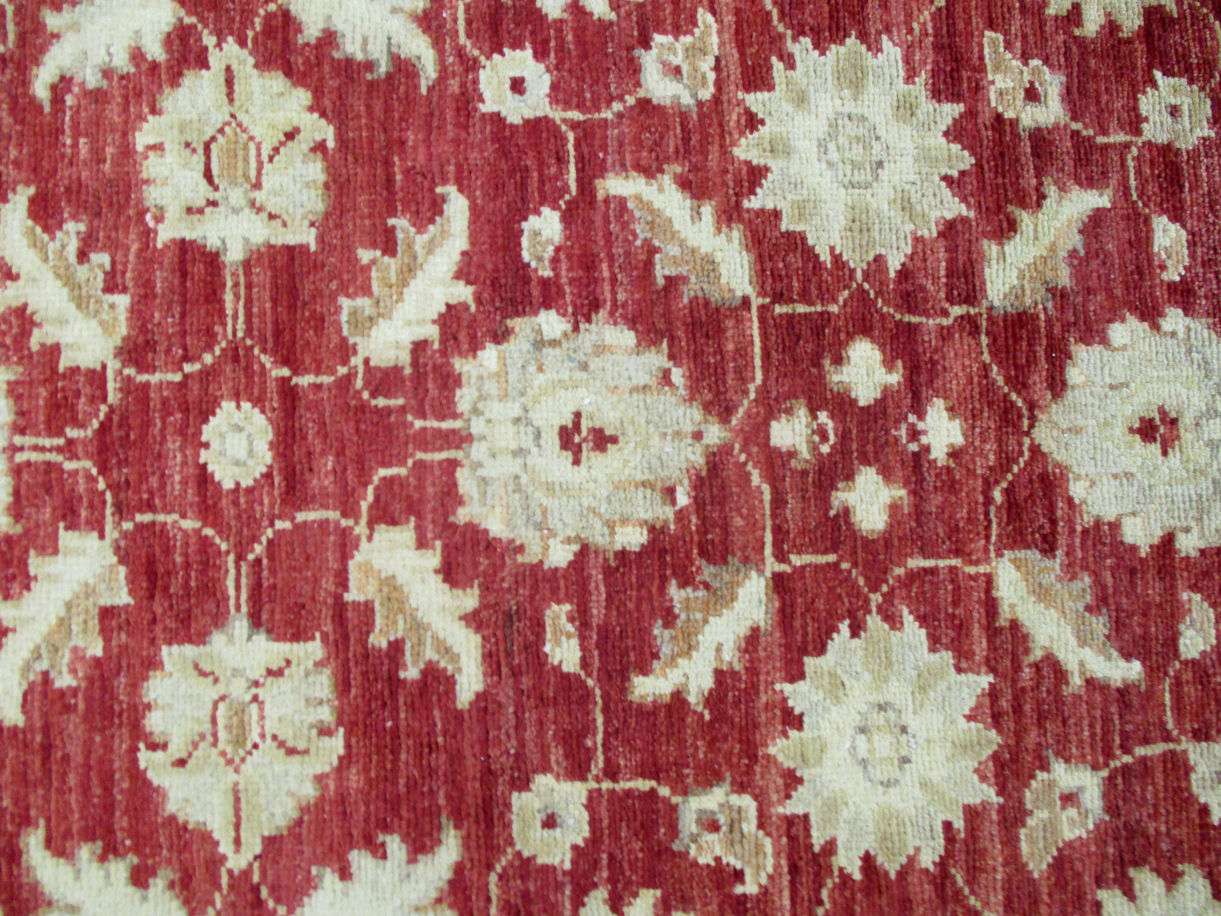 Ziegler are beautiful reproduction of centuries old Persian designs by Afghan weavers mainly Turkomans in Afghanistan. Material is a high-quality natural wool spun by hand using their centuries old traditional skill to create a perfect texture. Colors and dyes are often used from organic plants for muted finish, using their secret knowledge from nomadic way of life. Over the time, the same quality is also been produced in contemporary - modern designs provided by the western carpet dealers. The weaving skill of Turkomans, technique of hand spinning wool and colors have revived some of the master pieces, as close to the rugs produced in the past.