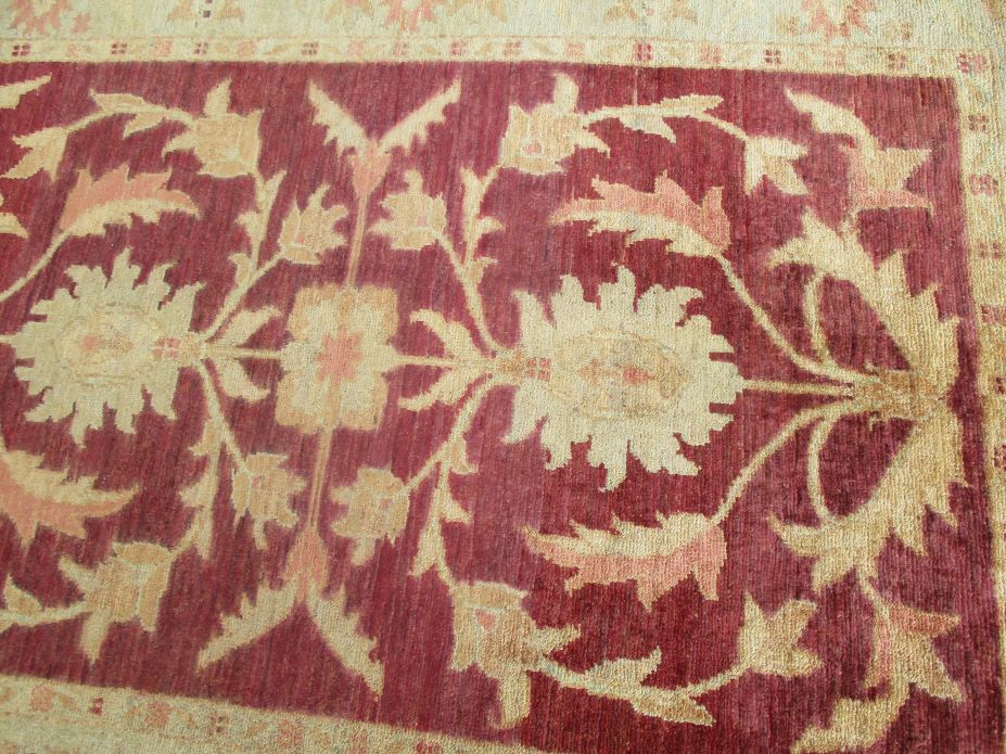 Ziegler are beautiful reproduction of centuries old Persian designs by Afghan weavers mainly Turkomans in Afghanistan. Material is a high-quality natural wool spun by hand using their centuries old traditional skill to create a perfect texture. Colors and dyes are often used from organic plants for muted finish, using their secret knowledge from nomadic way of life. Over the time, the same quality is also been produced in contemporary - modern designs provided by the western carpet dealers. The weaving skill of Turkomans, technique of hand spinning wool and colors have revived some of the master pieces, as close to the rugs produced in the past.