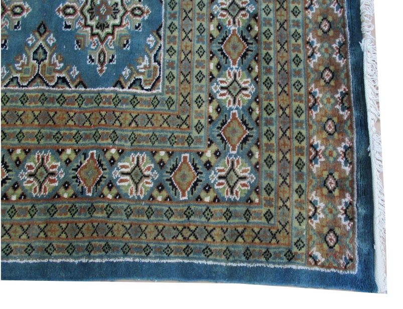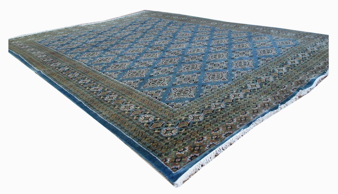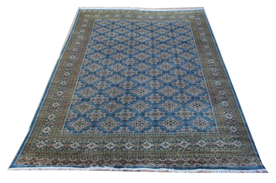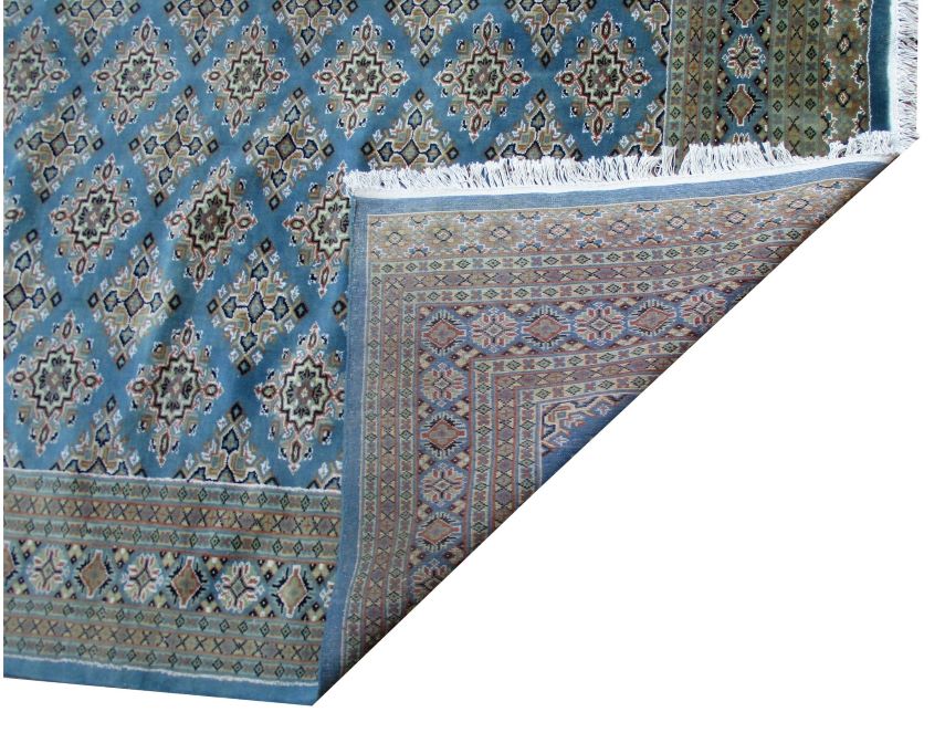 These carpets are produced in Pakistan by Master Weavers using single knot skill (Persian Knot). Knotting is integrated and dense which is normally up to 250,000 knots per sq. meter. Designs are taken from Centraal Asian geometrical designs using high quality Marina and New Zealand wool. Design is initially created on a graphic paper and then hanged on the loom for the weaver to follow the pattern. Designs and shape is often perfect and highly recommended for formal living.