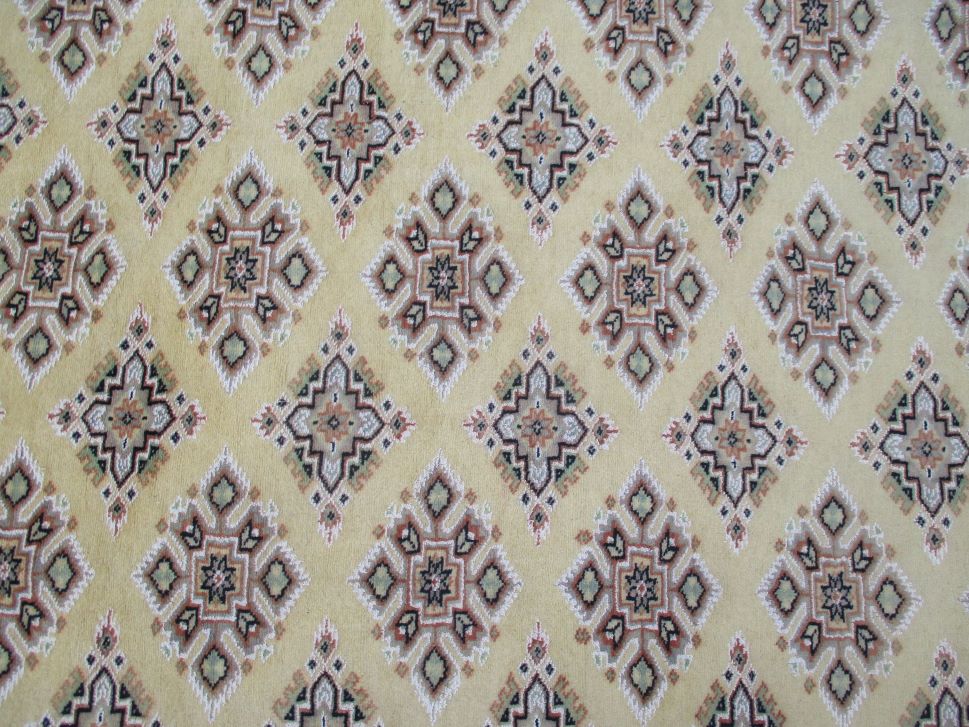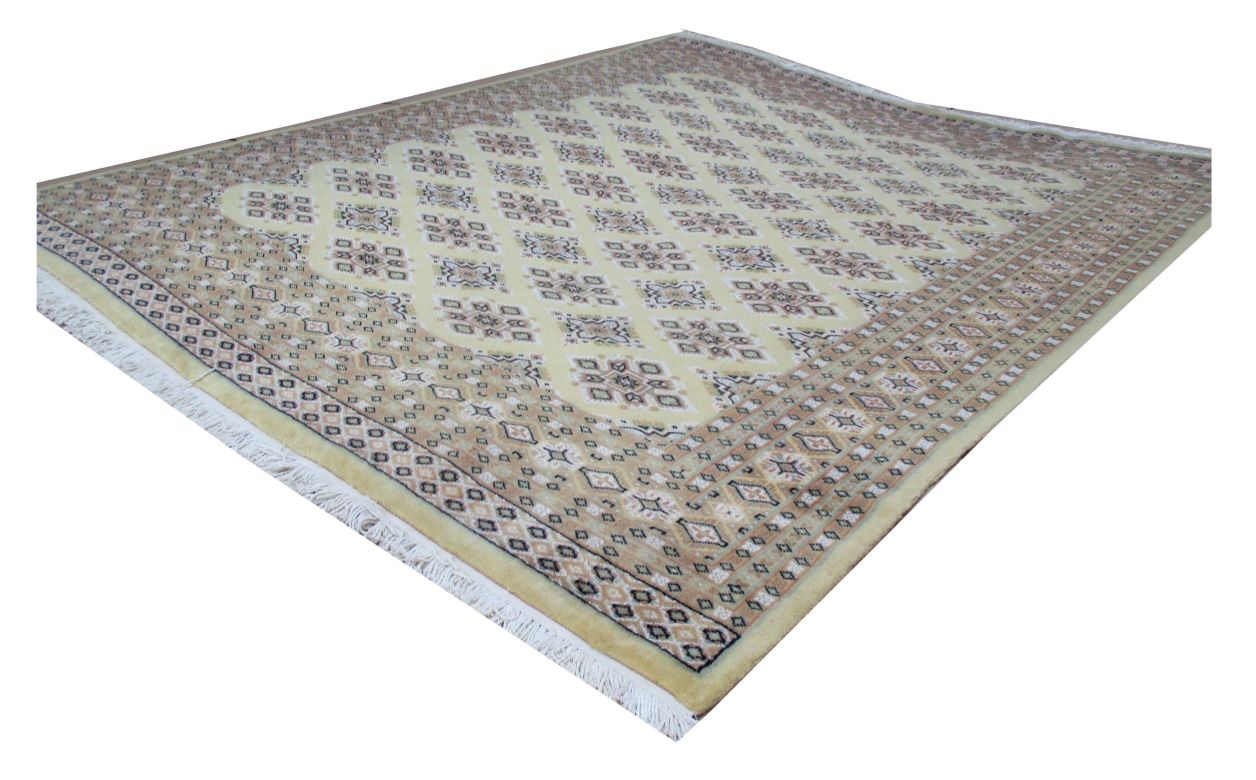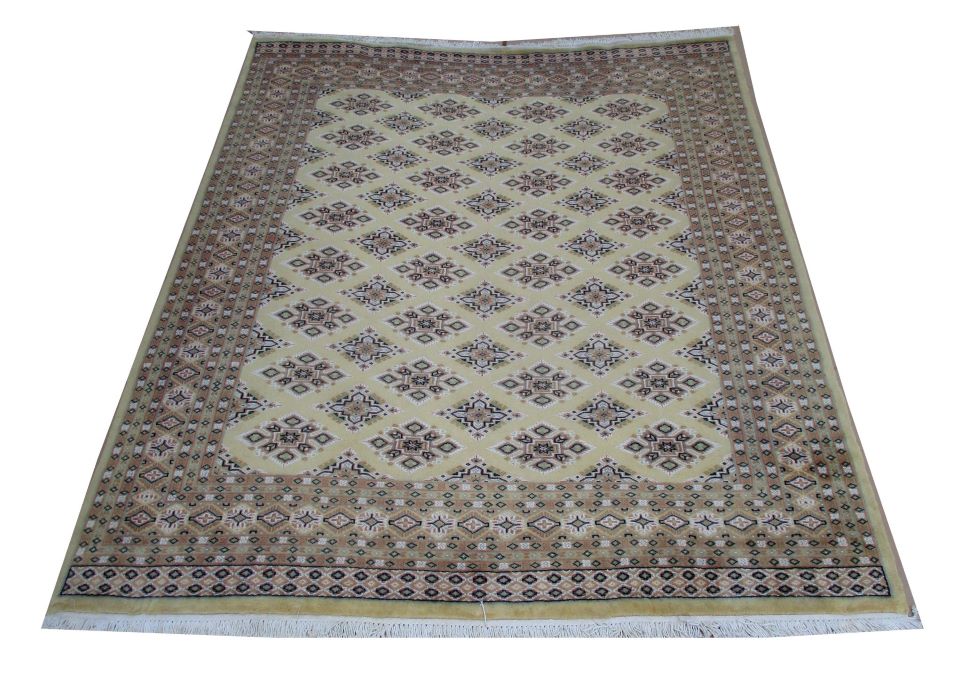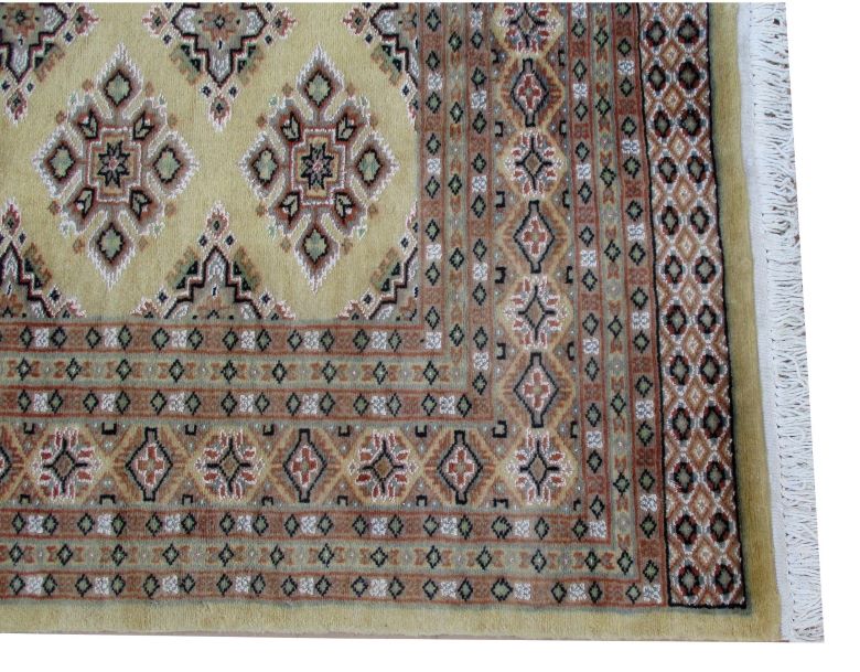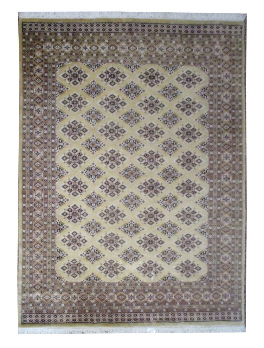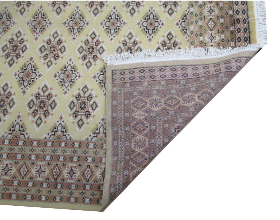 These carpets are produced in Pakistan by Master Weavers using single knot skill (Persian Knot). Knotting is integrated and dense which is normally up to 250,000 knots per sq. meter. Designs are taken from Centraal Asian geometrical designs using high quality Marina and New Zealand wool. Design is initially created on a graphic paper and then hanged on the loom for the weaver to follow the pattern. Designs and shape is often perfect and highly recommended for formal living.