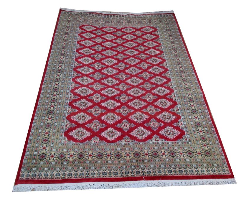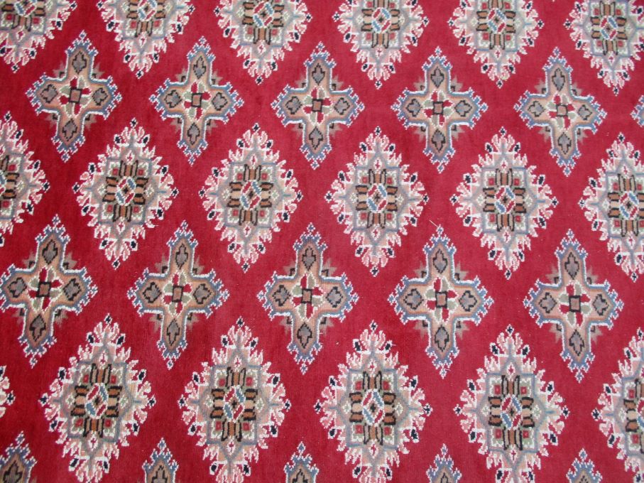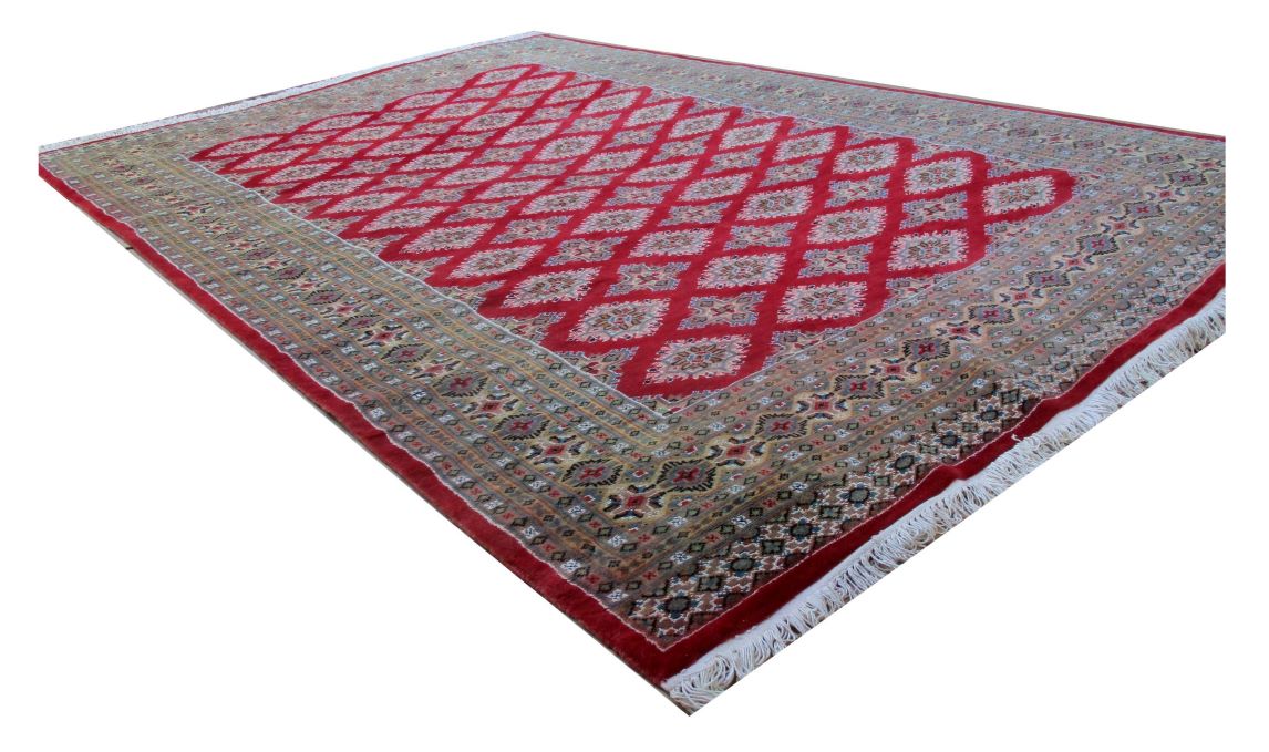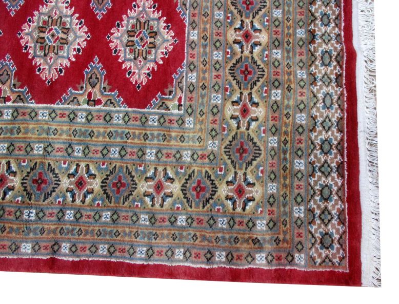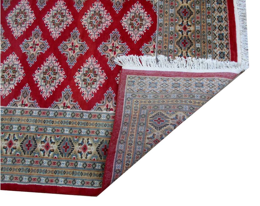 These carpets are produced in Pakistan by Master Weavers using single knot skill (Persian Knot). Knotting is integrated and dense which is normally up to 250,000 knots per sq. meter. Designs are taken from Centraal Asian geometrical designs using high quality Marina and New Zealand wool. Design is initially created on a graphic paper and then hanged on the loom for the weaver to follow the pattern. Designs and shape is often perfect and highly recommended for formal living.