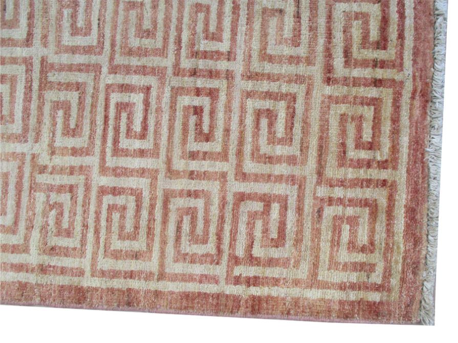 A beautiful reproduction of carefully selected contemporary modern designs by Afghan weavers mainly Turkomans in Afghanistan. Material is a high-quality natural wool spun by hand using their centuries old traditional skill to create a perfect texture. Colors and dyes are often used from organic plants for muted finish, using their secret knowledge from nomadic way of life. Over the time, some contemporaries modern designs provided by the western carpet dealers. The weaving skill of Turkomans, technique of hand spinning wool and colors have created some of the master pieces in modern designs.