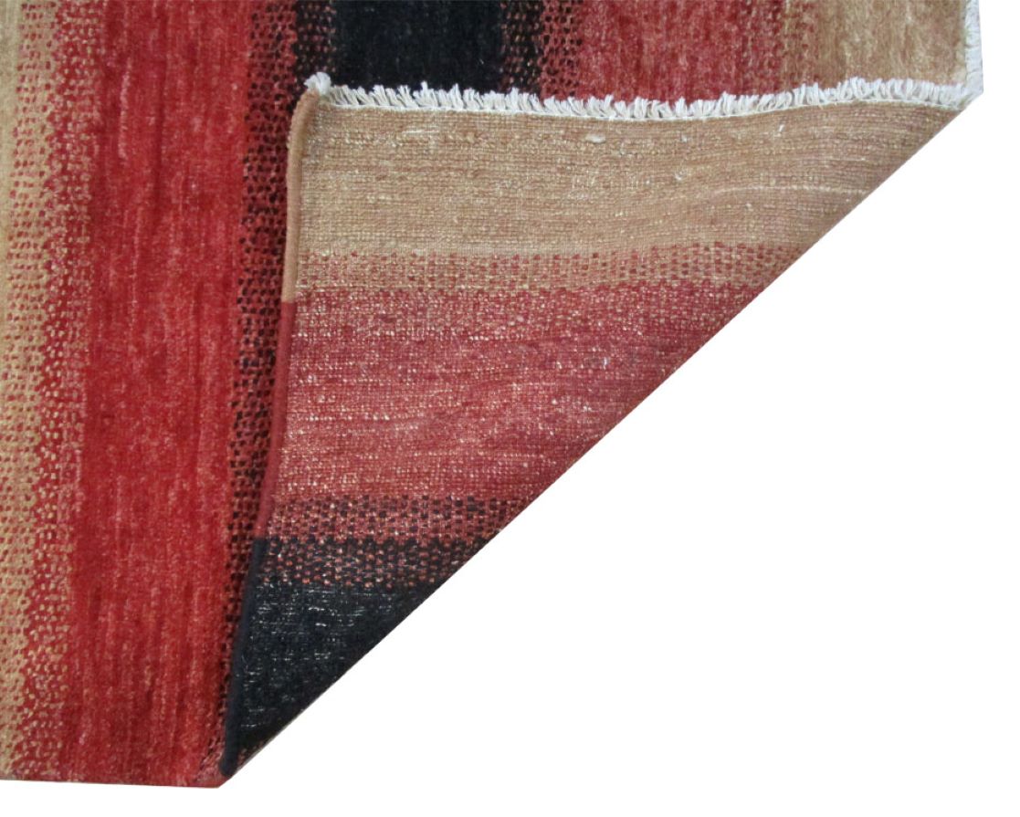 A beautiful reproduction of carefully selected contemporary modern designs by Afghan weavers mainly Turkomans in Afghanistan. Material is a high-quality natural wool spun by hand using their centuries old traditional skill to create a perfect texture. Colors and dyes are often used from organic plants for muted finish, using their secret knowledge from nomadic way of life. Over the time, some contemporaries modern designs provided by the western carpet dealers. The weaving skill of Turkomans, technique of hand spinning wool and colors have created some of the master pieces in modern designs.