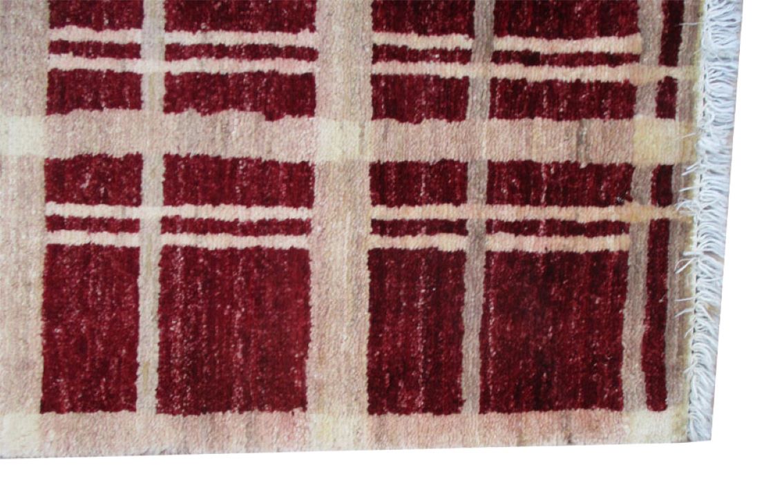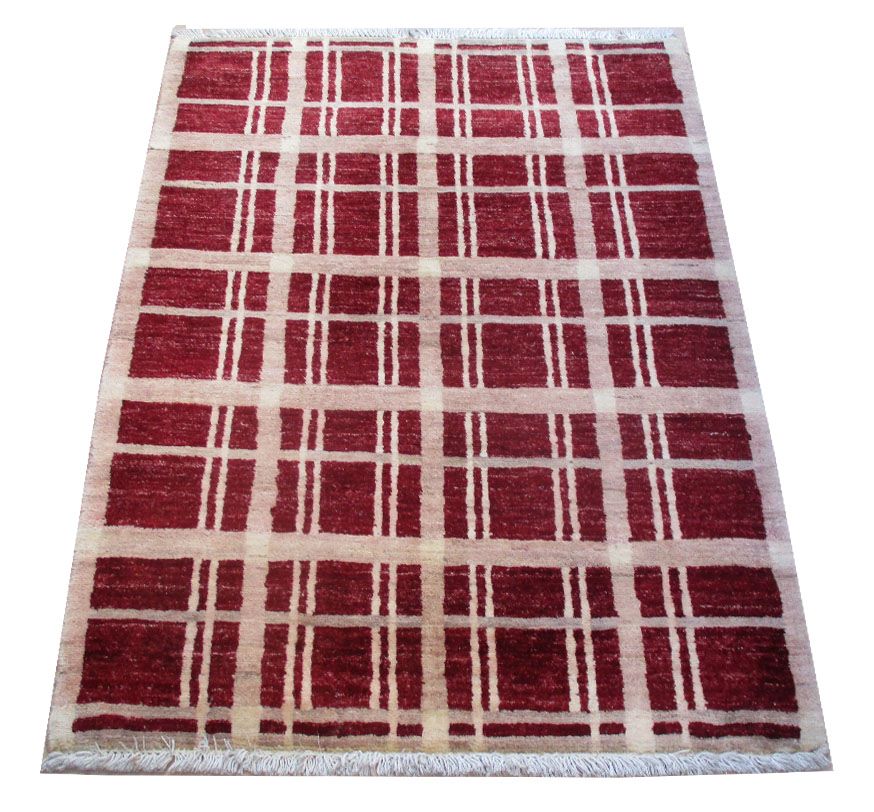 A beautiful reproduction of carefully selected contemporary modern designs by Afghan weavers mainly Turkomans in Afghanistan. Material is a high-quality natural wool spun by hand using their centuries old traditional skill to create a perfect texture. Colors and dyes are often used from organic plants for muted finish, using their secret knowledge from nomadic way of life. Over the time, some contemporaries modern designs provided by the western carpet dealers. The weaving skill of Turkomans, technique of hand spinning wool and colors have created some of the master pieces in modern designs.