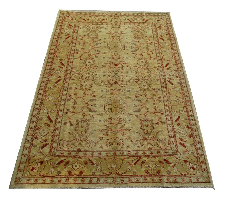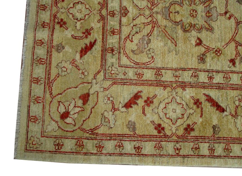 Ziegler are beautiful reproduction of centuries old Persian designs by Afghan weavers mainly Turkomans in Afghanistan. Material is a high-quality natural wool spun by hand using their centuries old traditional skill to create a perfect texture. Colors and dyes are often used from organic plants for muted finish, using their secret knowledge from nomadic way of life. Over the time, the same quality is also been produced in contemporary - modern designs provided by the western carpet dealers. The weaving skill of Turkomans, technique of hand spinning wool and colors have revived some of the master pieces, as close to the rugs produced in the past.