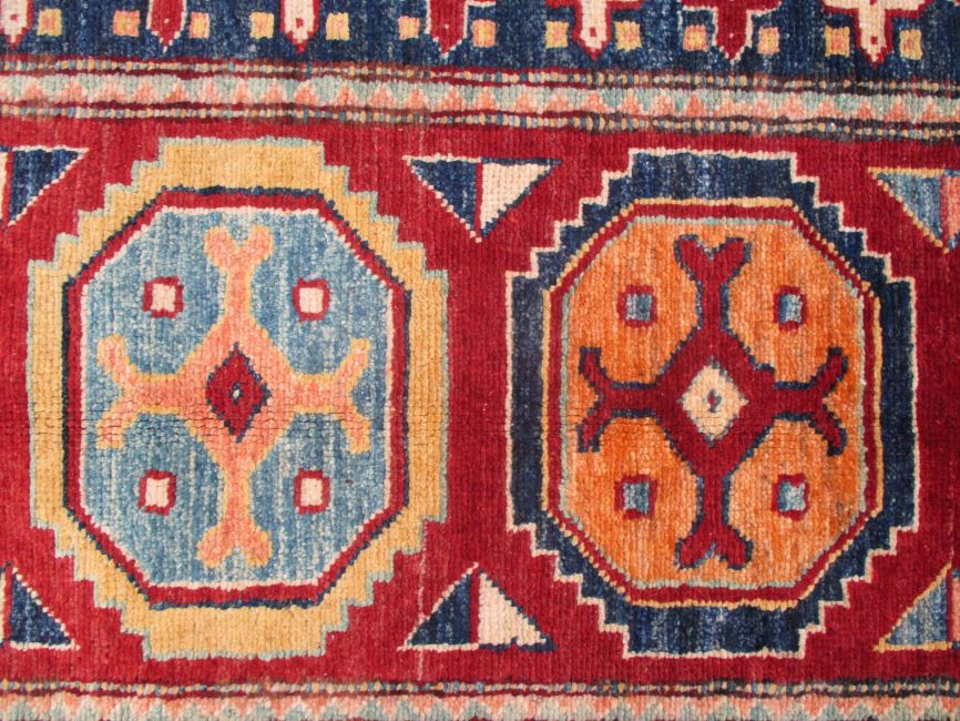 These are beautiful reproduction of centuries old Central Asian Caucasian designs by Afghan weavers mainly by Hazara Tribe known as master weavers in Afghanistan. Material is a high-quality natural wool spun by hand using their centuries old traditional skill to create a perfect texture to the carpet. Specific vibrant colors are used to give closest look to the ancient designs, using their secret knowledge passed through family traditions . The weaving skill, knowledge of hand spinning wool and skill to match various vibrant colors have revived some of the master pieces, as close to the rugs produced in past.