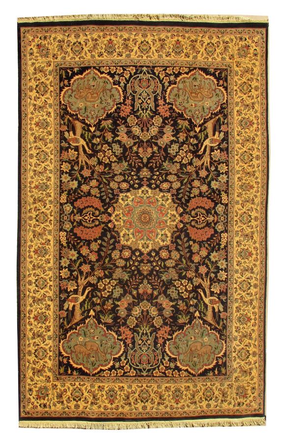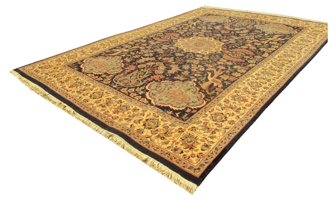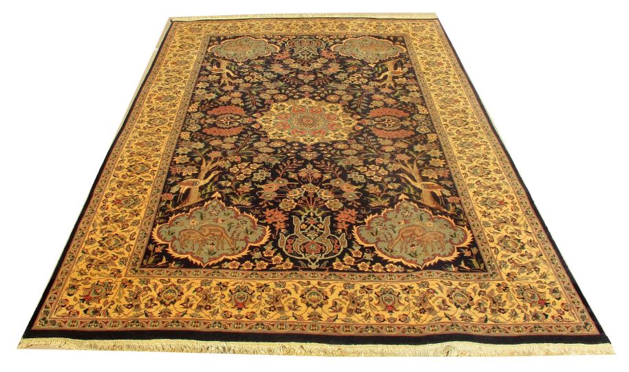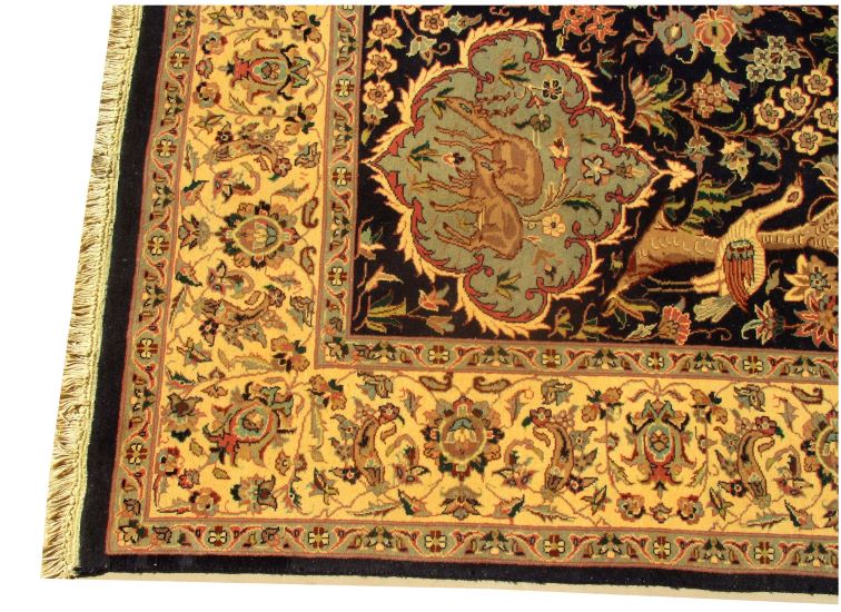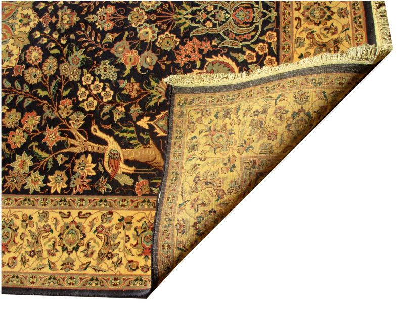 These carpets are produced in Pakistan by Master Weavers using double knot skill (Turkish Knot). Knotting is highly integrated and dense which is normally up to 500,000 knots per sq. meter. Designs are taken from famous Persian Carpet designs using high quality Marina and New Zealand wool. Design is initially created on a graphic paper and then converted into a written format which is narrated by one person next to the weavers and weavers follow the numbers of knots for each color tp place on required area. Designs and shape is often perfect and highly recommended for formal living.