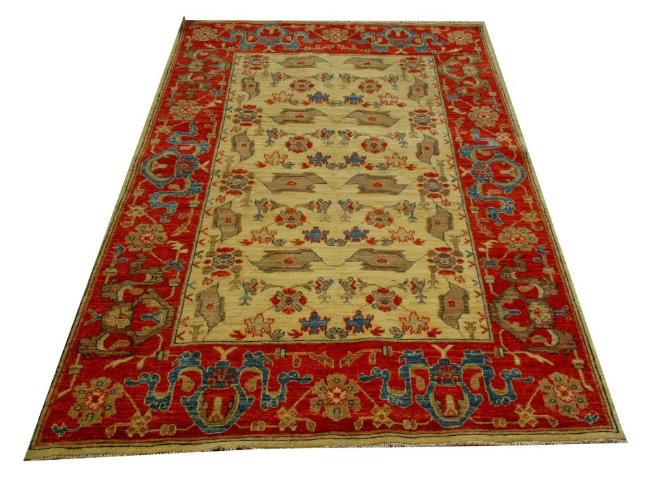 Ziegler are beautiful reproduction of centuries old Persian designs by Afghan weavers mainly Turkomans in Afghanistan. Material is a high-quality natural wool spun by hand using their centuries old traditional skill to create a perfect texture. Colors and dyes are often used from organic plants for muted finish, using their secret knowledge from nomadic way of life. Over the time, the same quality is also been produced in contemporary - modern designs provided by the western carpet dealers. The weaving skill of Turkomans, technique of hand spinning wool and colors have revived some of the master pieces, as close to the rugs produced in the past.