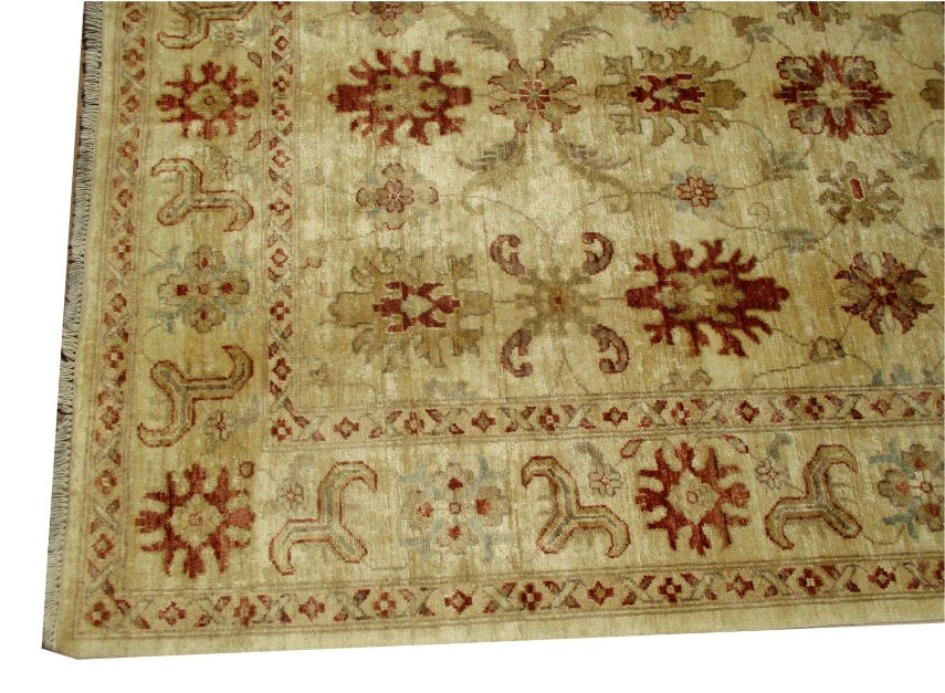 Ziegler are beautiful reproduction of centuries old Persian designs by Afghan weavers mainly Turkomans in Afghanistan. Material is a high-quality natural wool spun by hand using their centuries old traditional skill to create a perfect texture. Colors and dyes are often used from organic plants for muted finish, using their secret knowledge from nomadic way of life. Over the time, the same quality is also been produced in contemporary - modern designs provided by the western carpet dealers. The weaving skill of Turkomans, technique of hand spinning wool and colors have revived some of the master pieces, as close to the rugs produced in the past.