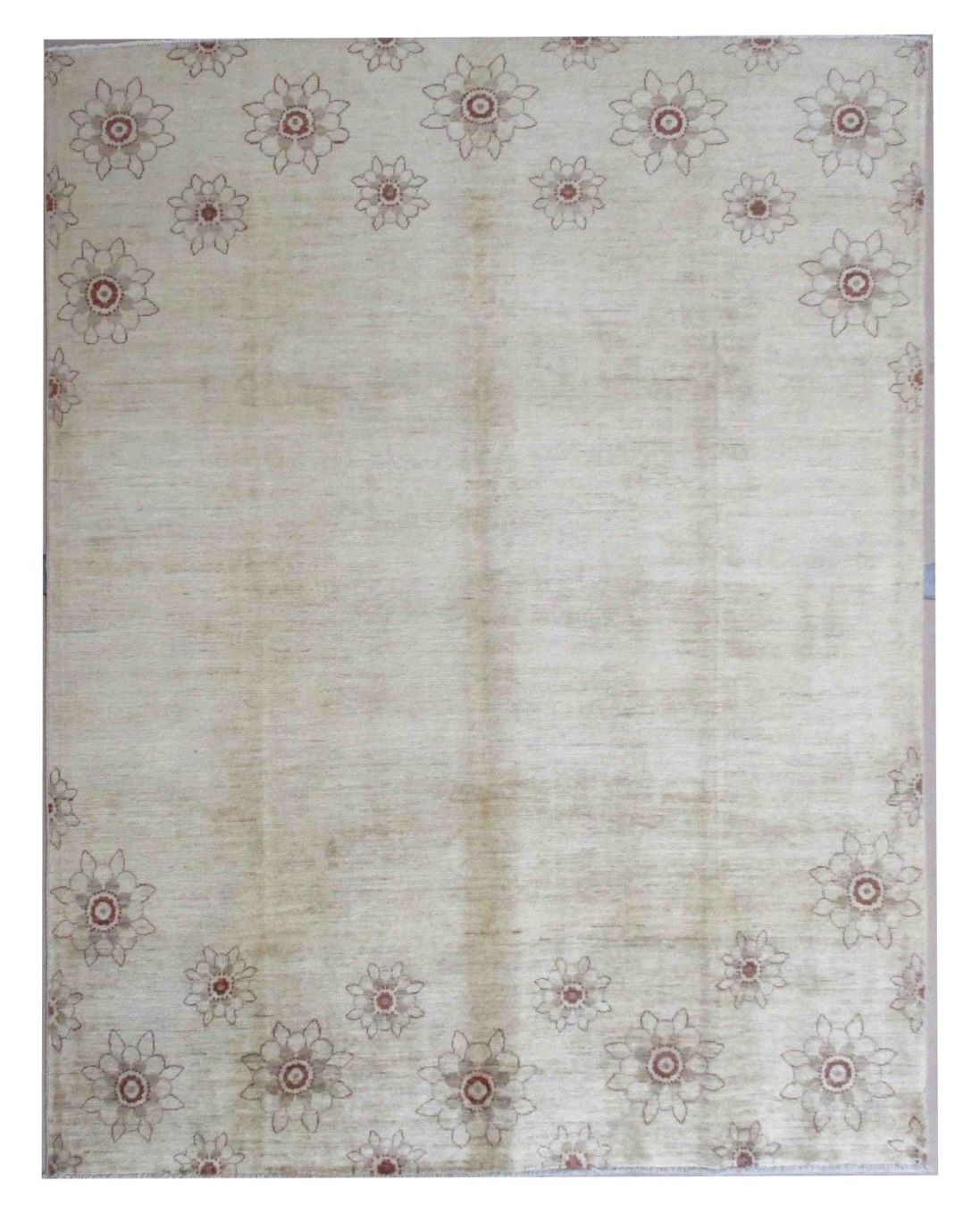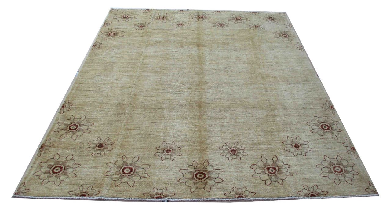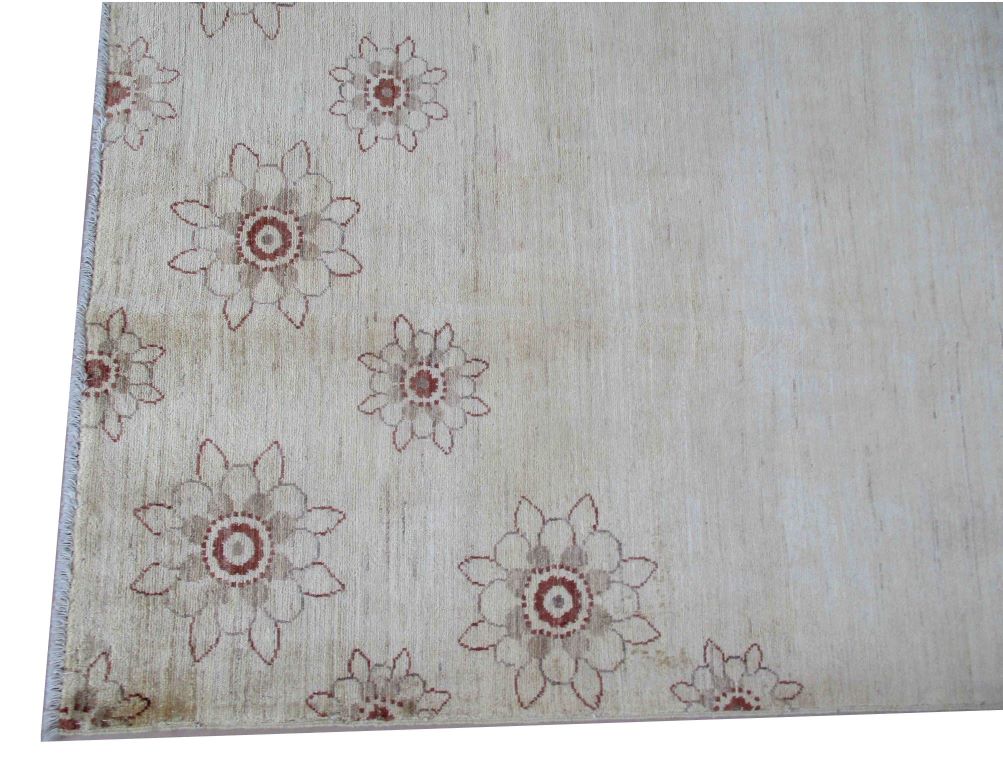 A beautiful reproduction of carefully selected contemporary modern designs by Afghan weavers mainly Turkomans in Afghanistan. Material is a high-quality natural wool spun by hand using their centuries old traditional skill to create a perfect texture. Colors and dyes are often used from organic plants for muted finish, using their secret knowledge from nomadic way of life. Over the time, some contemporaries modern designs provided by the western carpet dealers. The weaving skill of Turkomans, technique of hand spinning wool and colors have created some of the master pieces in modern designs.