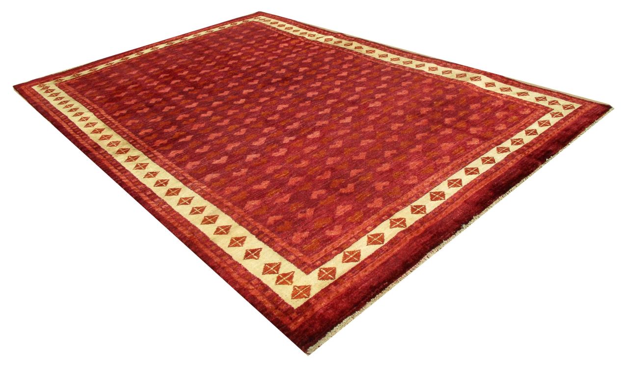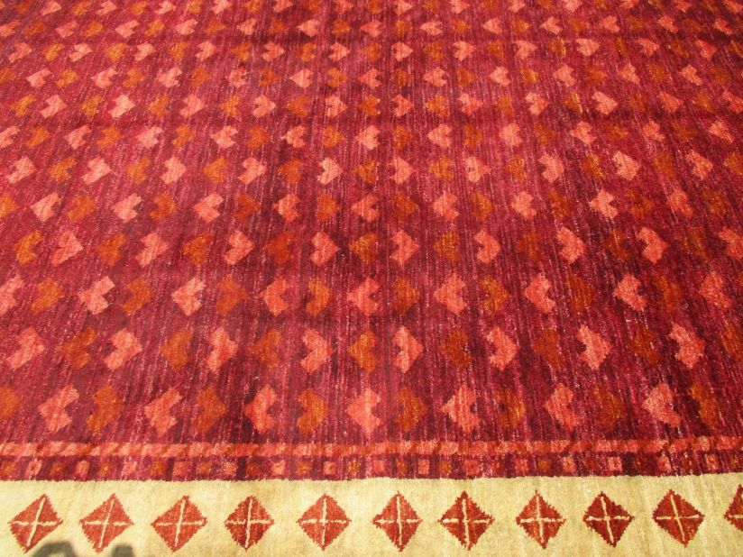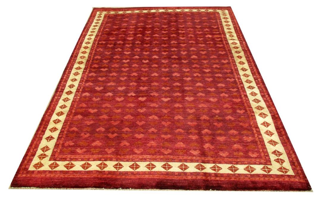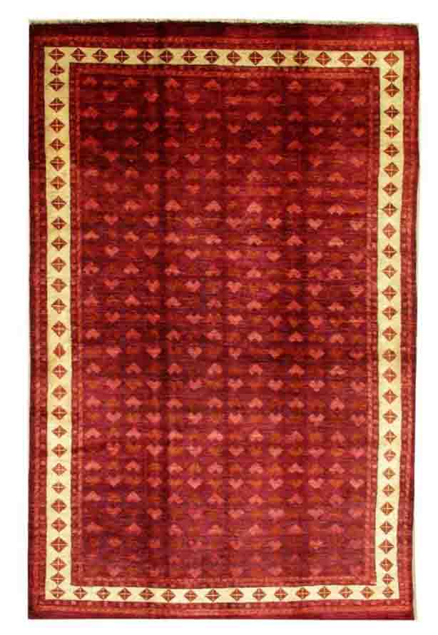 A beautiful reproduction of carefully selected contemporary modern designs by Afghan weavers mainly Turkomans in Afghanistan. Material is a high-quality natural wool spun by hand using their centuries old traditional skill to create a perfect texture. Colors and dyes are often used from organic plants for muted finish, using their secret knowledge from nomadic way of life. Over the time, some contemporaries modern designs provided by the western carpet dealers. The weaving skill of Turkomans, technique of hand spinning wool and colors have created some of the master pieces in modern designs.