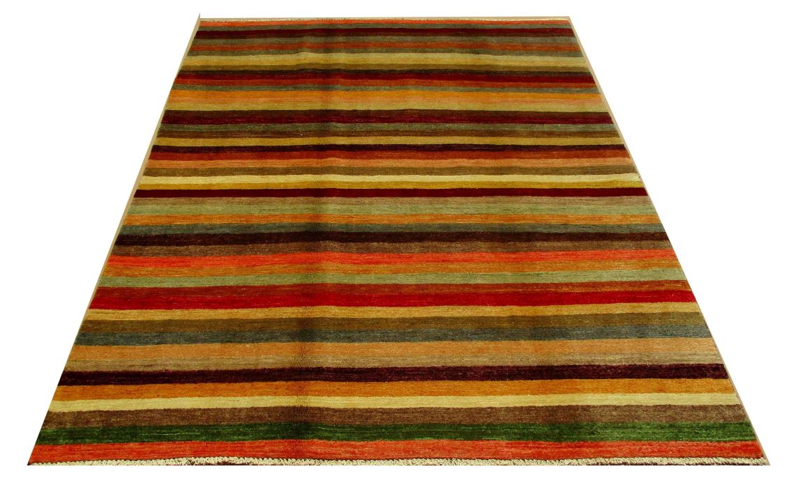 A beautiful reproduction of carefully selected contemporary modern designs by Afghan weavers mainly Turkomans in Afghanistan. Material is a high-quality natural wool spun by hand using their centuries old traditional skill to create a perfect texture. Colors and dyes are often used from organic plants for muted finish, using their secret knowledge from nomadic way of life. Over the time, some contemporaries modern designs provided by the western carpet dealers. The weaving skill of Turkomans, technique of hand spinning wool and colors have created some of the master pieces in modern designs.