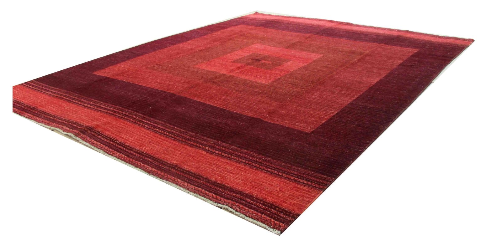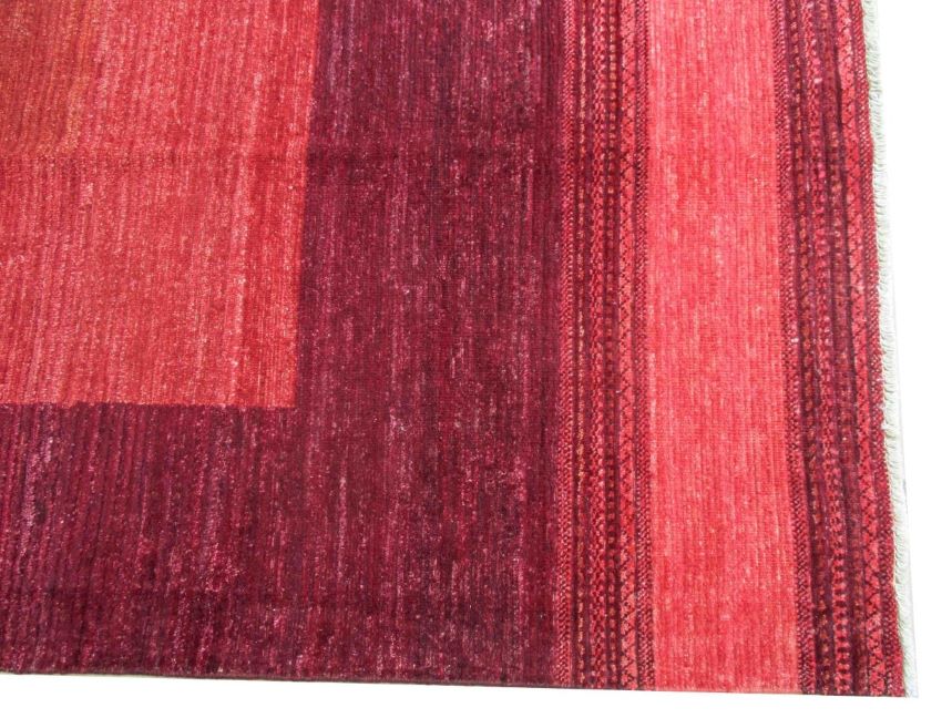 A beautiful reproduction of carefully selected contemporary modern designs by Afghan weavers mainly Turkomans in Afghanistan. Material is a high-quality natural wool spun by hand using their centuries old traditional skill to create a perfect texture. Colors and dyes are often used from organic plants for muted finish, using their secret knowledge from nomadic way of life. Over the time, some contemporaries modern designs provided by the western carpet dealers. The weaving skill of Turkomans, technique of hand spinning wool and colors have created some of the master pieces in modern designs.