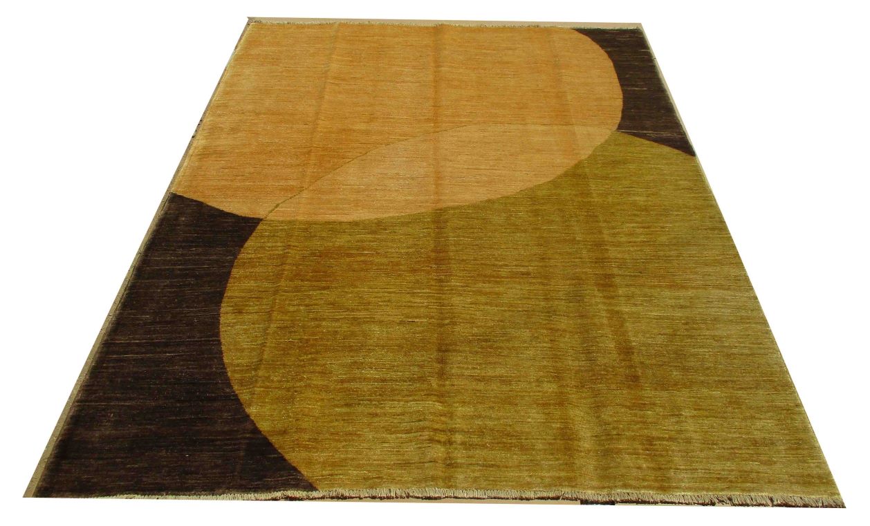 A beautiful reproduction of carefully selected contemporary modern designs by Afghan weavers mainly Turkomans in Afghanistan. Material is a high-quality natural wool spun by hand using their centuries old traditional skill to create a perfect texture. Colors and dyes are often used from organic plants for muted finish, using their secret knowledge from nomadic way of life. Over the time, some contemporaries modern designs provided by the western carpet dealers. The weaving skill of Turkomans, technique of hand spinning wool and colors have created some of the master pieces in modern designs.