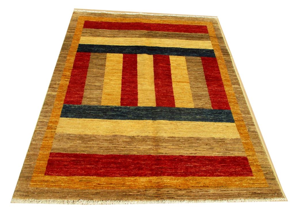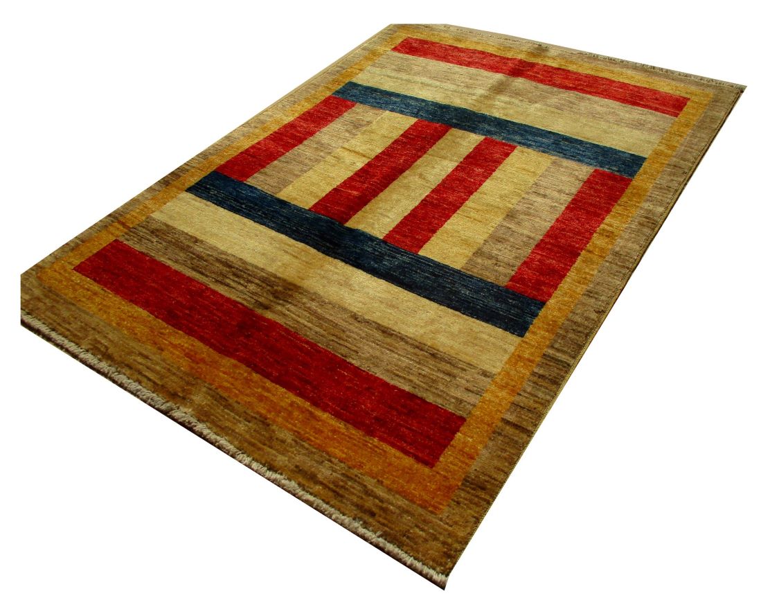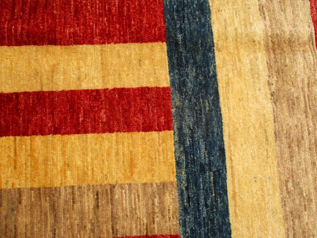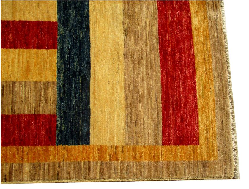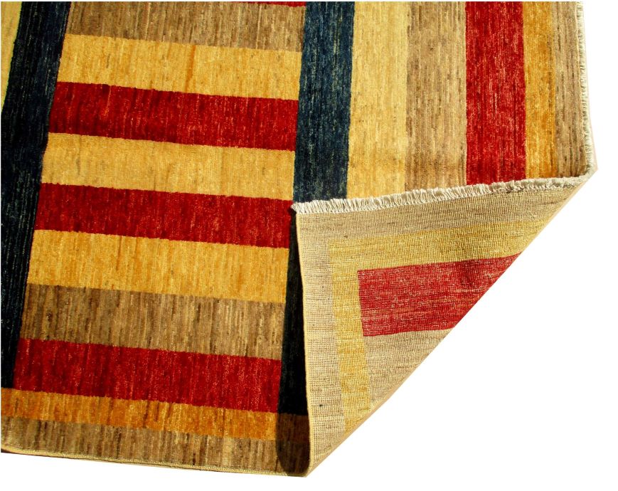 A beautiful reproduction of carefully selected contemporary modern designs by Afghan weavers mainly Turkomans in Afghanistan. Material is a high-quality natural wool spun by hand using their centuries old traditional skill to create a perfect texture. Colors and dyes are often used from organic plants for muted finish, using their secret knowledge from nomadic way of life. Over the time, some contemporaries modern designs provided by the western carpet dealers. The weaving skill of Turkomans, technique of hand spinning wool and colors have created some of the master pieces in modern designs.