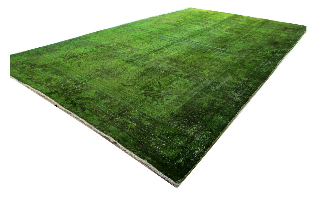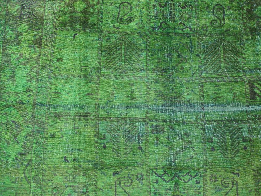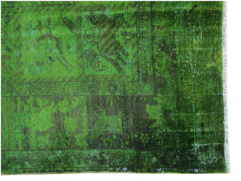 Vintage - Distressed and Color Reformed finish is achieved by undergoing a unique process on the carpets which are Semi old. Choosing the best quality carpets, neutralizing their colors, shaving/clipping down to almost Zero pile in order to achieve perfect Vintage-Distressed look, then over dyeing them with exciting vibrant colors, giving each carpet a unique and one of a kind look for modern and contemporary trend and decor. Some of the distressed pieces are also kept without overdyeing, leaving them in neutralized natural look. Please note that to create a worn down, vintage and distressed look, some of the carpets may have intentionally created tiny Patches professionally fixed and blended with the original look and color. Since these carpets are produced with high quality natural wool, they are sturdy against years of heavy traffic and can be used anywhere including Hallways and Salons.