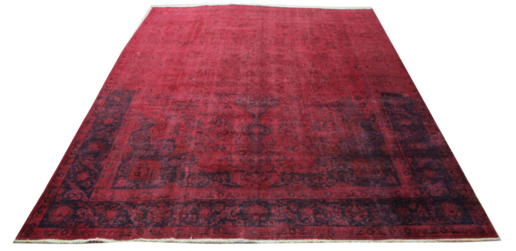 Vintage - Distressed and Color Reformed finish is achieved by undergoing a unique process on the carpets which are Semi old. Choosing the best quality carpets, neutralizing their colors, shaving/clipping down to almost Zero pile in order to achieve perfect Vintage-Distressed look, then over dyeing them with exciting vibrant colors, giving each carpet a unique and one of a kind look for modern and contemporary trend and décor. Some of the distressed pieces are also kept without overdyeing, leaving them in neutralized natural look. Please note that to create a worn down, vintage and distressed look, some of the carpets may have intentionally created tiny Patches professionally fixed and blended with the original look and color. Since these carpets are produced with high quality natural wool, they are sturdy against years of heavy traffic and can be used anywhere including Hallways and Salons.
