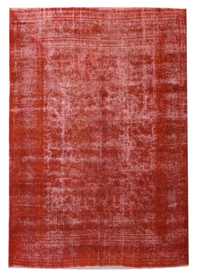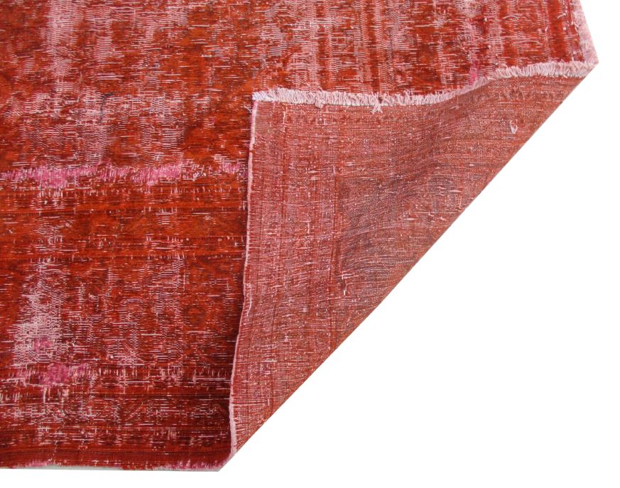 Extreme Distressed-Vintage and Over dyed finish is achieved by undergoing a unique process on the carpets which are Semi old. Choosing the best quality carpets, neutralizing their colors, shaving/clipping down to almost Zero pile in order to achieve perfect Vintage-Distressed look, then over dyeing them with exciting vibrant colors, giving each carpet a unique and one of a kind look for modern and contemporary trend and decor. In order to create Extreme distressed, vintage and worn out look, these carpets may have intentionally created tiny Patches professionally fixed and blended with the original look and color. Since these carpets are produced with high quality natural wool, they are sturdy against years of heavy traffic and can be used anywhere including Hallways and Salons.