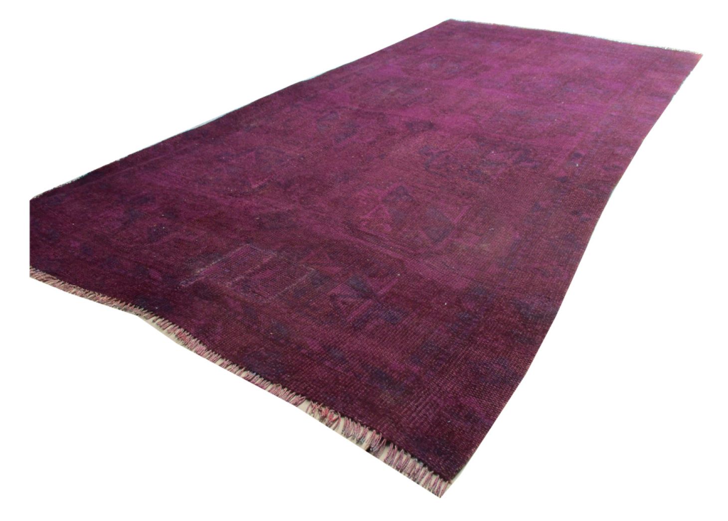 Extreme Distressed-Vintage and Over dyed finish is achieved by undergoing a unique process on the carpets which are Semi old. Choosing the best quality carpets, neutralizing their colors, shaving/clipping down to almost Zero pile in order to achieve perfect Vintage-Distressed look, then over dyeing them with exciting vibrant colors, giving each carpet a unique and one of a kind look for modern and contemporary trend and decor. In order to create Extreme distressed, vintage and worn out look, these carpets may have intentionally created tiny Patches professionally fixed and blended with the original look and color. Since these carpets are produced with high quality natural wool, they are sturdy against years of heavy traffic and can be used anywhere including Hallways and Salons.