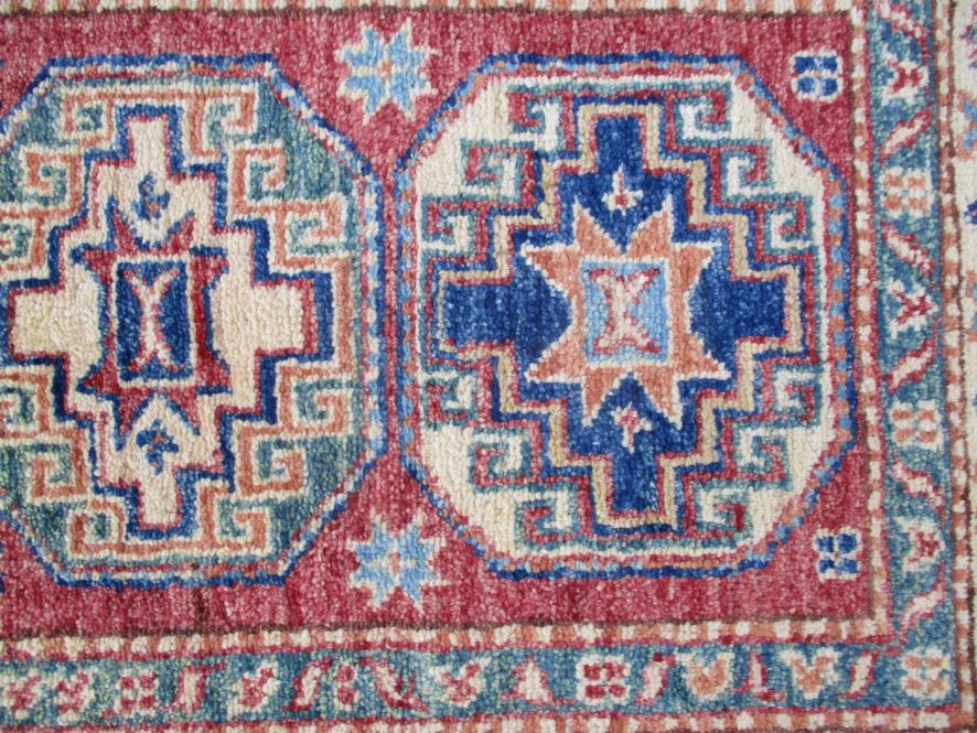 These are beautiful reproduction of centuries old Central Asian Caucasian designs by Afghan weavers mainly by Hazara Tribe known as master weavers in Afghanistan. Material is a high-quality natural wool spun by hand using their centuries old traditional skill to create a perfect texture to the carpet. Specific vibrant colors are used to give closest look to the ancient designs, using their secret knowledge passed through family traditions . The weaving skill, knowledge of hand spinning wool and skill to match various vibrant colors have revived some of the master pieces, as close to the rugs produced in past.