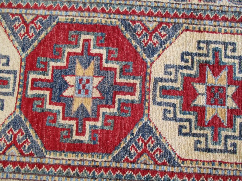 These are beautiful reproduction of centuries old Central Asian Caucasian designs by Afghan weavers mainly by Hazara Tribe known as master weavers in Afghanistan. Material is a high-quality natural wool spun by hand using their centuries old traditional skill to create a perfect texture to the carpet. Specific vibrant colors are used to give closest look to the ancient designs, using their secret knowledge passed through family traditions . The weaving skill, knowledge of hand spinning wool and skill to match various vibrant colors have revived some of the master pieces, as close to the rugs produced in past.