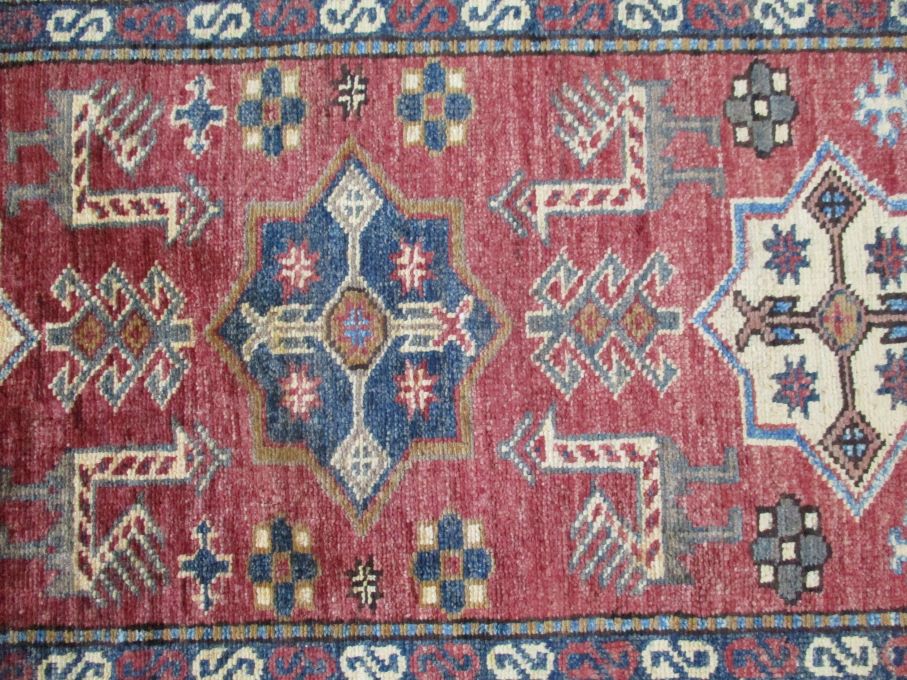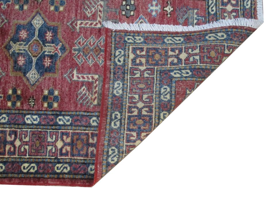 These are beautiful reproduction of centuries old Central Asian Caucasian designs by Afghan weavers mainly by Hazara Tribe known as master weavers in Afghanistan. Material is a high-quality natural wool spun by hand using their centuries old traditional skill to create a perfect texture to the carpet. Specific vibrant colors are used to give closest look to the ancient designs, using their secret knowledge passed through family traditions . The weaving skill, knowledge of hand spinning wool and skill to match various vibrant colors have revived some of the master pieces, as close to the rugs produced in past.