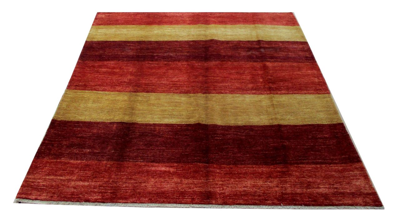 A beautiful reproduction of carefully selected contemporary modern designs by Afghan weavers mainly Turkomans in Afghanistan. Material is a high-quality natural wool spun by hand using their centuries old traditional skill to create a perfect texture. Colors and dyes are often used from organic plants for muted finish, using their secret knowledge from nomadic way of life. Over the time, some contemporaries modern designs provided by the western carpet dealers. The weaving skill of Turkomans, technique of hand spinning wool and colors have created some of the master pieces in modern designs.