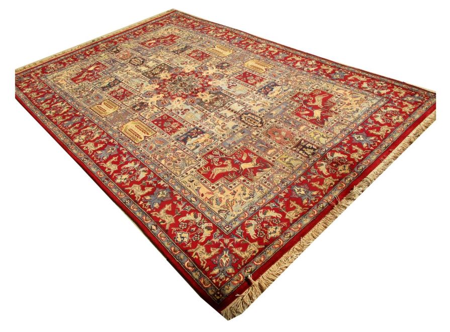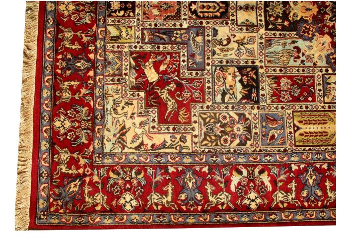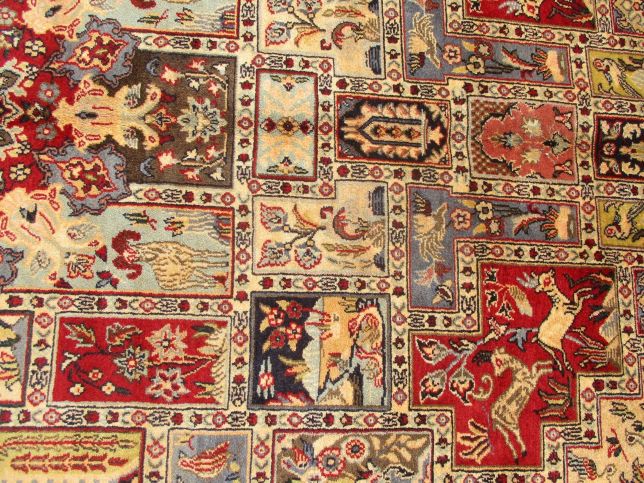 These carpets are produced in Pakistan by Master Weavers using double knot skill (Turkish Knot). Knotting is highly integrated and dense which is normally up to 500,000 knots per sq. meter. Designs are taken from famous Persian Carpet designs using high quality Marina and New Zealand wool. Design is initially created on a graphic paper and then converted into a written format which is narrated by one person next to the weavers and weavers follow the numbers of knots for each color tp place on required area. Designs and shape is often perfect and highly recommended for formal living.