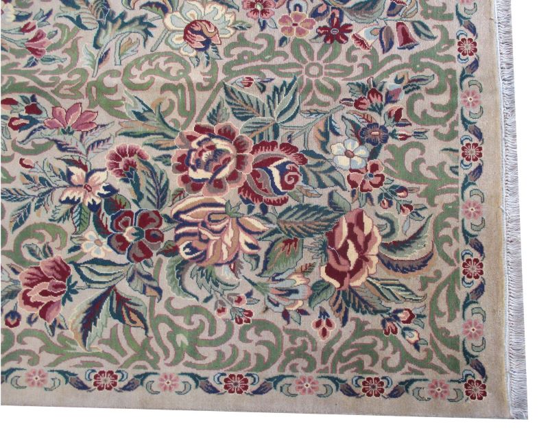 These carpets are produced in Pakistan by Master Weavers using double knot skill (Turkish Knot). Knotting is highly integrated and dense which is normally up to 500,000 knots per sq. meter. Designs are taken from famous Persian Carpet designs using high quality Marina and New Zealand wool. Design is initially created on a graphic paper and then converted into a written format which is narrated by one person next to the weavers and weavers follow the numbers of knots for each color tp place on required area. Designs and shape is often perfect and highly recommended for formal living.