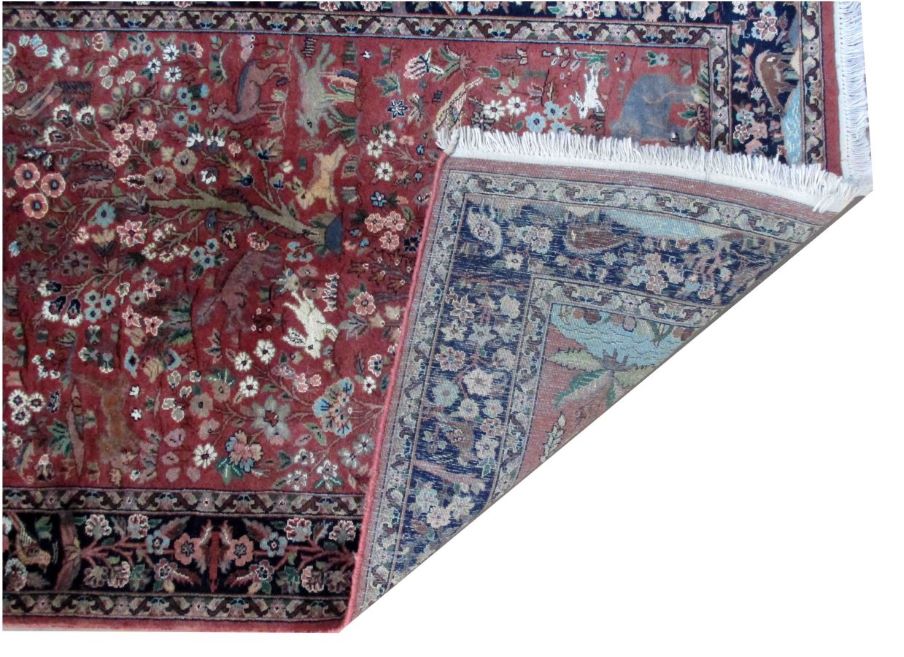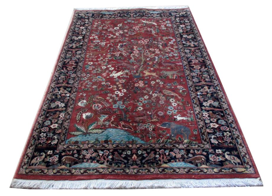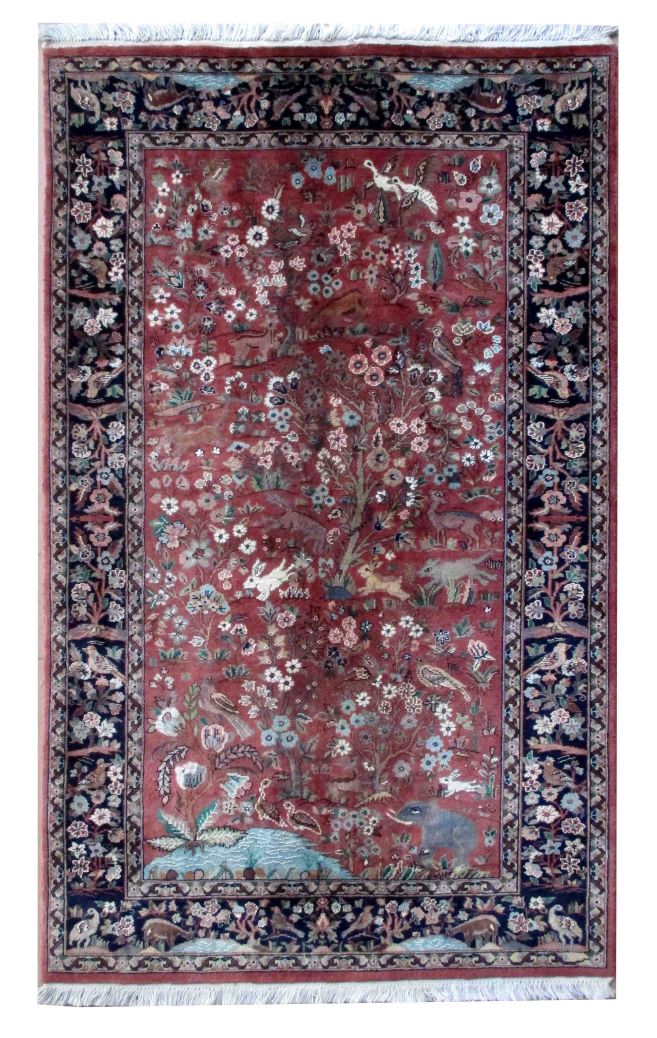 These carpets are produced in Pakistan by Master Weavers using double knot skill (Turkish Knot). Knotting is highly integrated and dense which is normally up to 500,000 knots per sq. meter. Designs are taken from famous Persian Carpet designs using high quality Marina and New Zealand wool. Design is initially created on a graphic paper and then converted into a written format which is narrated by one person next to the weavers and weavers follow the numbers of knots for each color tp place on required area. Designs and shape is often perfect and highly recommended for formal living.