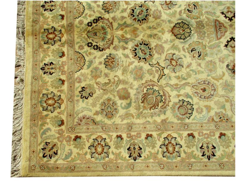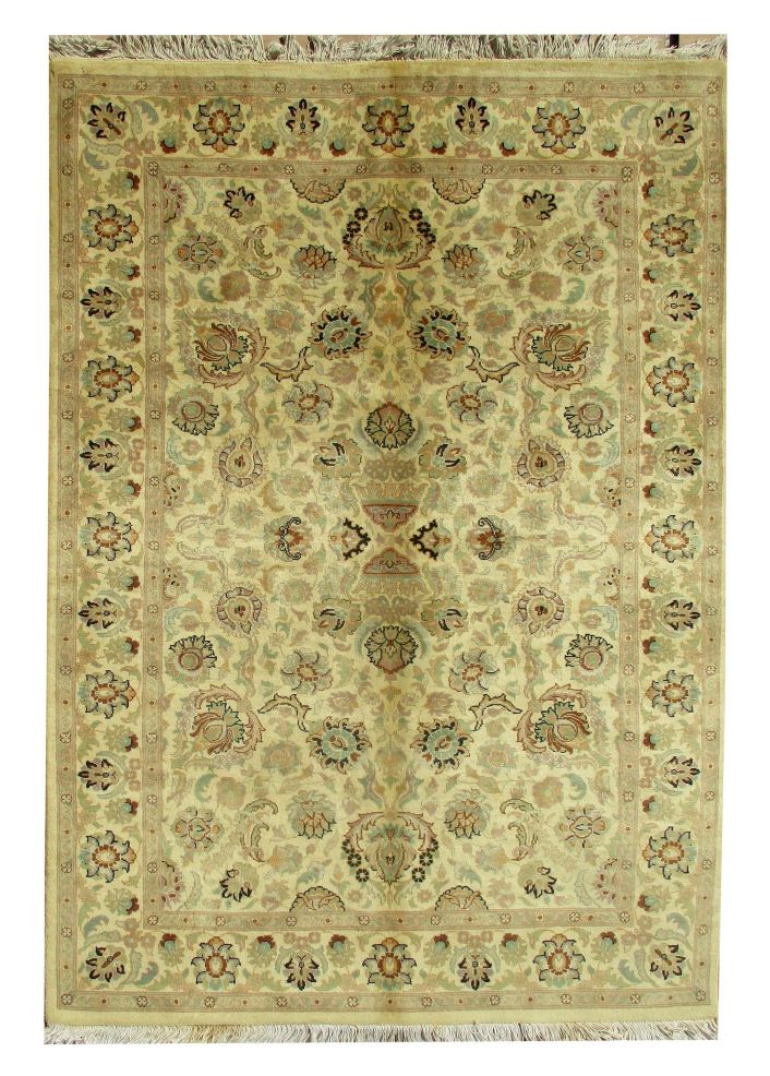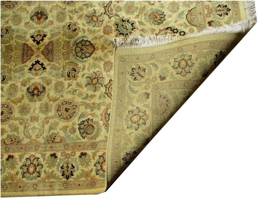 These carpets are produced in Pakistan by Master Weavers using double knot skill (Turkish Knot). Knotting is highly integrated and dense which is normally up to 500,000 knots per sq. meter. Designs are taken from famous Persian Carpet designs using high quality Marina and New Zealand wool. Design is initially created on a graphic paper and then converted into a written format which is narrated by one person next to the weavers and weavers follow the numbers of knots for each color tp place on required area. Designs and shape is often perfect and highly recommended for formal living.