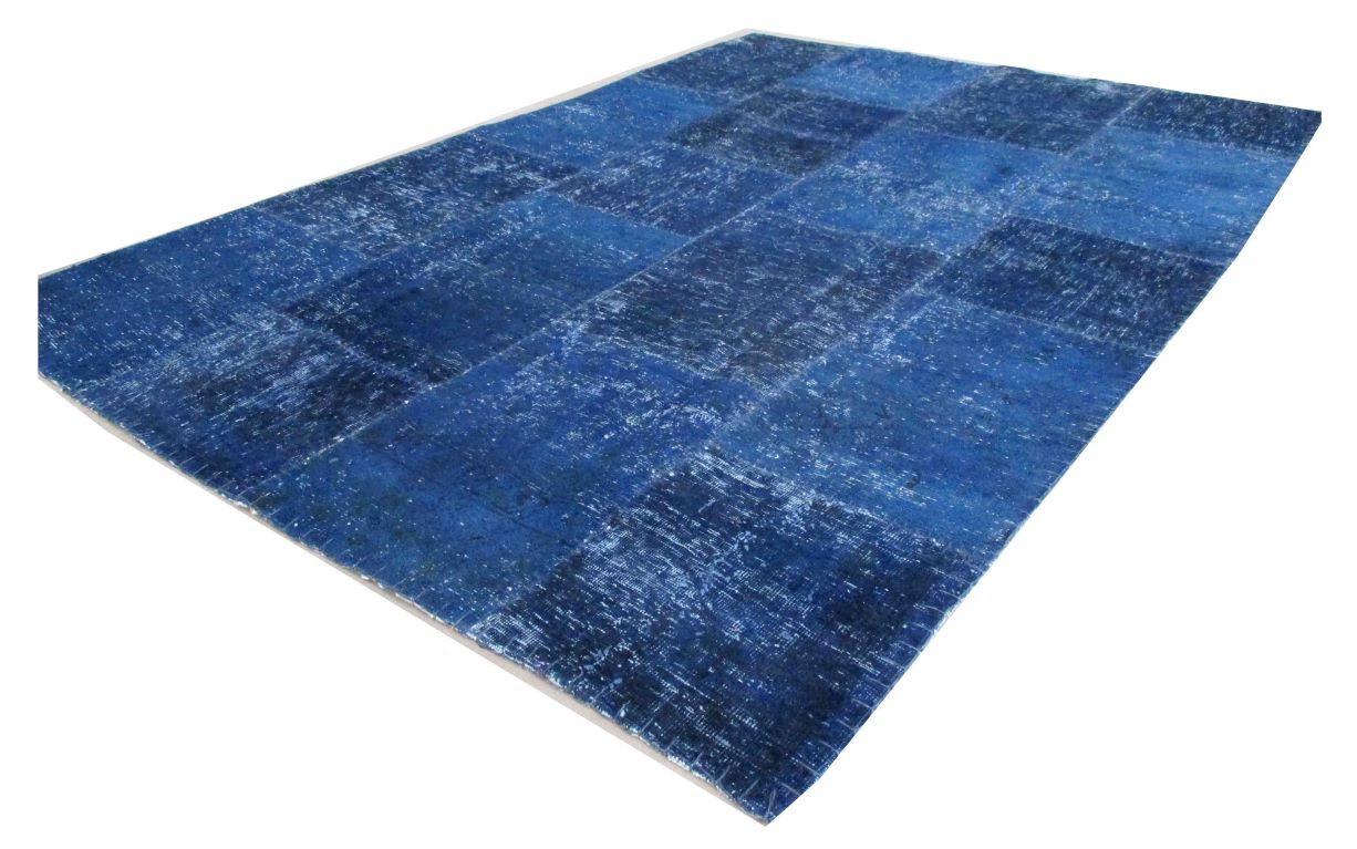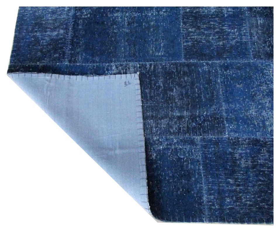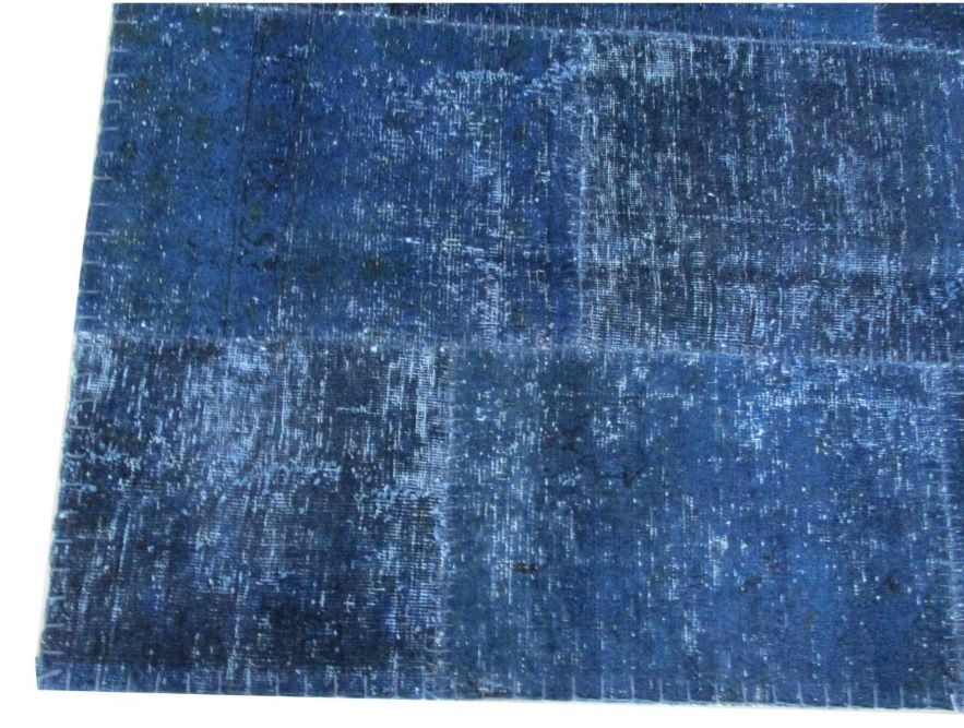 Vintage - Distressed and Color Reformed finish is achieved by undergoing a unique process on the carpets which are Semi old. Choosing the best quality carpets, neutralizing their colors, shaving/clipping down to almost Zero pile in order to achieve perfect Vintage-Distressed look, then over dyeing them with exciting vibrant colors, giving each carpet a unique and one of a kind look for modern and contemporary trend and decor. Some of the distressed pieces are also kept without overdyeing, leaving them in neutralized natural look. These carpets then cut into required size pieces to create Patch Work . All Patch work carpets are hand made and hand stitched by skilled workers.