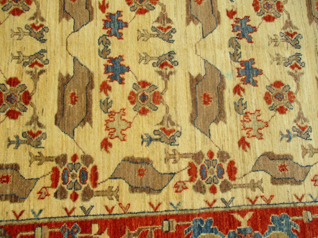 Ziegler are beautiful reproduction of centuries old Persian designs by Afghan weavers mainly Turkomans in Afghanistan. Material is a high-quality natural wool spun by hand using their centuries old traditional skill to create a perfect texture. Colors and dyes are often used from organic plants for muted finish, using their secret knowledge from nomadic way of life. Over the time, the same quality is also been produced in contemporary - modern designs provided by the western carpet dealers. The weaving skill of Turkomans, technique of hand spinning wool and colors have revived some of the master pieces, as close to the rugs produced in the past.