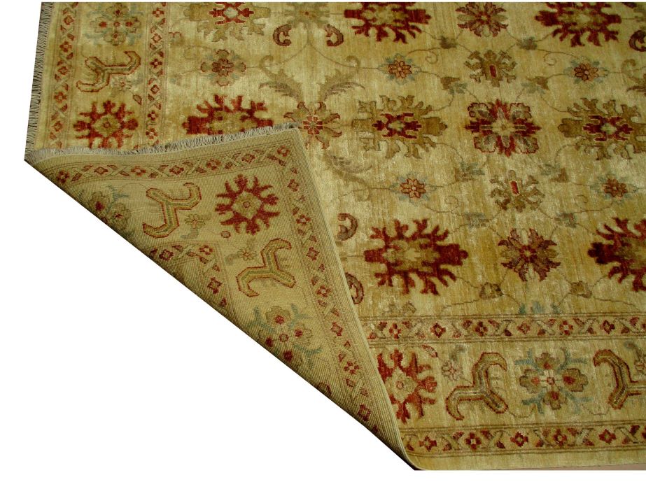 Ziegler are beautiful reproduction of centuries old Persian designs by Afghan weavers mainly Turkomans in Afghanistan. Material is a high-quality natural wool spun by hand using their centuries old traditional skill to create a perfect texture. Colors and dyes are often used from organic plants for muted finish, using their secret knowledge from nomadic way of life. Over the time, the same quality is also been produced in contemporary - modern designs provided by the western carpet dealers. The weaving skill of Turkomans, technique of hand spinning wool and colors have revived some of the master pieces, as close to the rugs produced in the past.