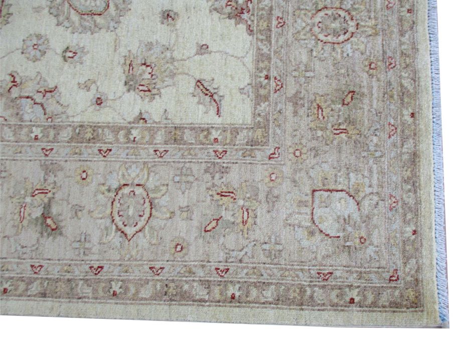 Ziegler are beautiful reproduction of centuries old Persian designs by Afghan weavers mainly Turkomans in Afghanistan. Material is a high-quality natural wool spun by hand using their centuries old traditional skill to create a perfect texture. Colors and dyes are often used from organic plants for muted finish, using their secret knowledge from nomadic way of life. Over the time, the same quality is also been produced in contemporary - modern designs provided by the western carpet dealers. The weaving skill of Turkomans, technique of hand spinning wool and colors have revived some of the master pieces, as close to the rugs produced in the past.
