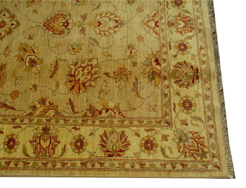 Ziegler are beautiful reproduction of centuries old Persian designs by Afghan weavers mainly Turkomans in Afghanistan. Material is a high-quality natural wool spun by hand using their centuries old traditional skill to create a perfect texture. Colors and dyes are often used from organic plants for muted finish, using their secret knowledge from nomadic way of life. Over the time, the same quality is also been produced in contemporary - modern designs provided by the western carpet dealers. The weaving skill of Turkomans, technique of hand spinning wool and colors have revived some of the master pieces, as close to the rugs produced in the past.