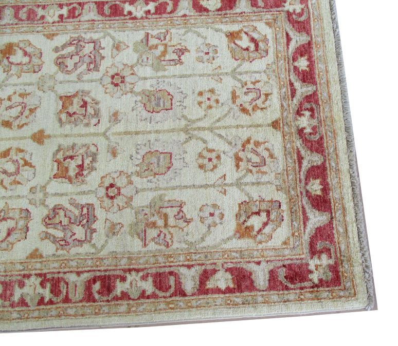 Ziegler are beautiful reproduction of centuries old Persian designs by Afghan weavers mainly Turkomans in Afghanistan. Material is a high-quality natural wool spun by hand using their centuries old traditional skill to create a perfect texture. Colors and dyes are often used from organic plants for muted finish, using their secret knowledge from nomadic way of life. Over the time, the same quality is also been produced in contemporary - modern designs provided by the western carpet dealers. The weaving skill of Turkomans, technique of hand spinning wool and colors have revived some of the master pieces, as close to the rugs produced in the past.