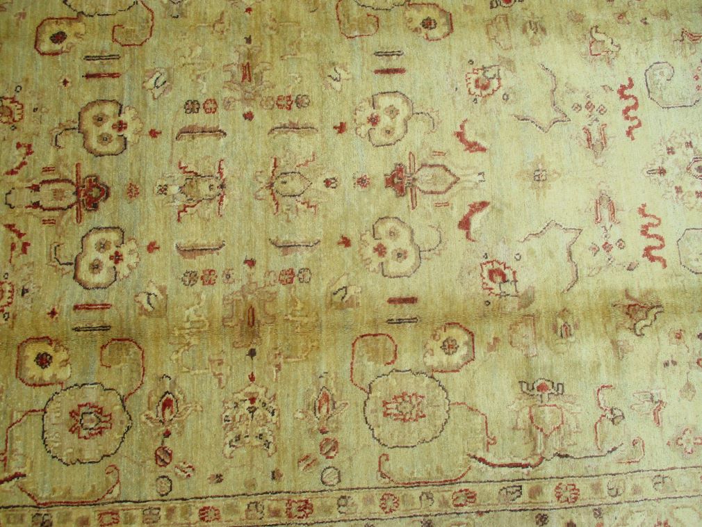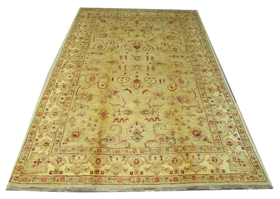 Ziegler are beautiful reproduction of centuries old Persian designs by Afghan weavers mainly Turkomans in Afghanistan. Material is a high-quality natural wool spun by hand using their centuries old traditional skill to create a perfect texture. Colors and dyes are often used from organic plants for muted finish, using their secret knowledge from nomadic way of life. Over the time, the same quality is also been produced in contemporary - modern designs provided by the western carpet dealers. The weaving skill of Turkomans, technique of hand spinning wool and colors have revived some of the master pieces, as close to the rugs produced in the past.