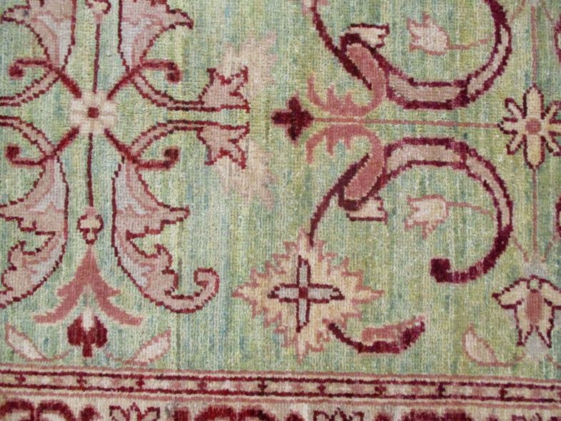 Ziegler are beautiful reproduction of centuries old Persian designs by Afghan weavers mainly Turkomans in Afghanistan. Material is a high-quality natural wool spun by hand using their centuries old traditional skill to create a perfect texture. Colors and dyes are often used from organic plants for muted finish, using their secret knowledge from nomadic way of life. Over the time, the same quality is also been produced in contemporaries modern designs provided by the western carpet dealers. The weaving skill of Turkomans, technique of hand spinning wool and colors have revived some of the master pieces, as close to the rugs produced in past centuries.
